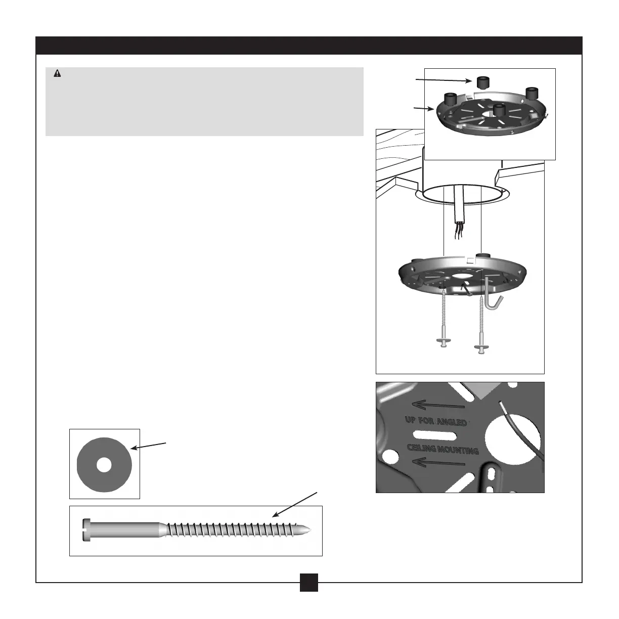 2-4. Align the slotted holes in the ceiling plate with the pilot holes you
