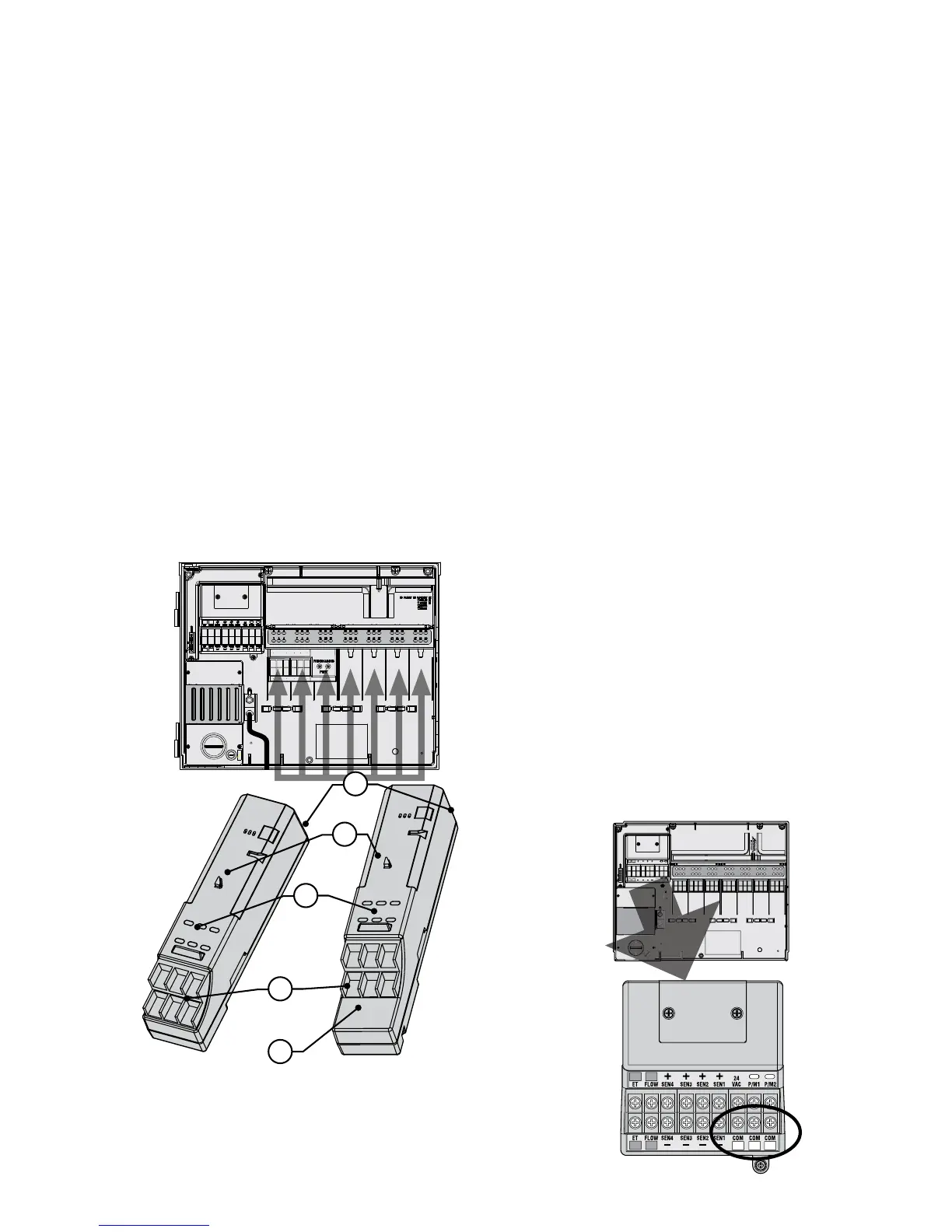 for station wiring connections. The base configuration is 12 stations (two 6-station modules installed) with a maximum