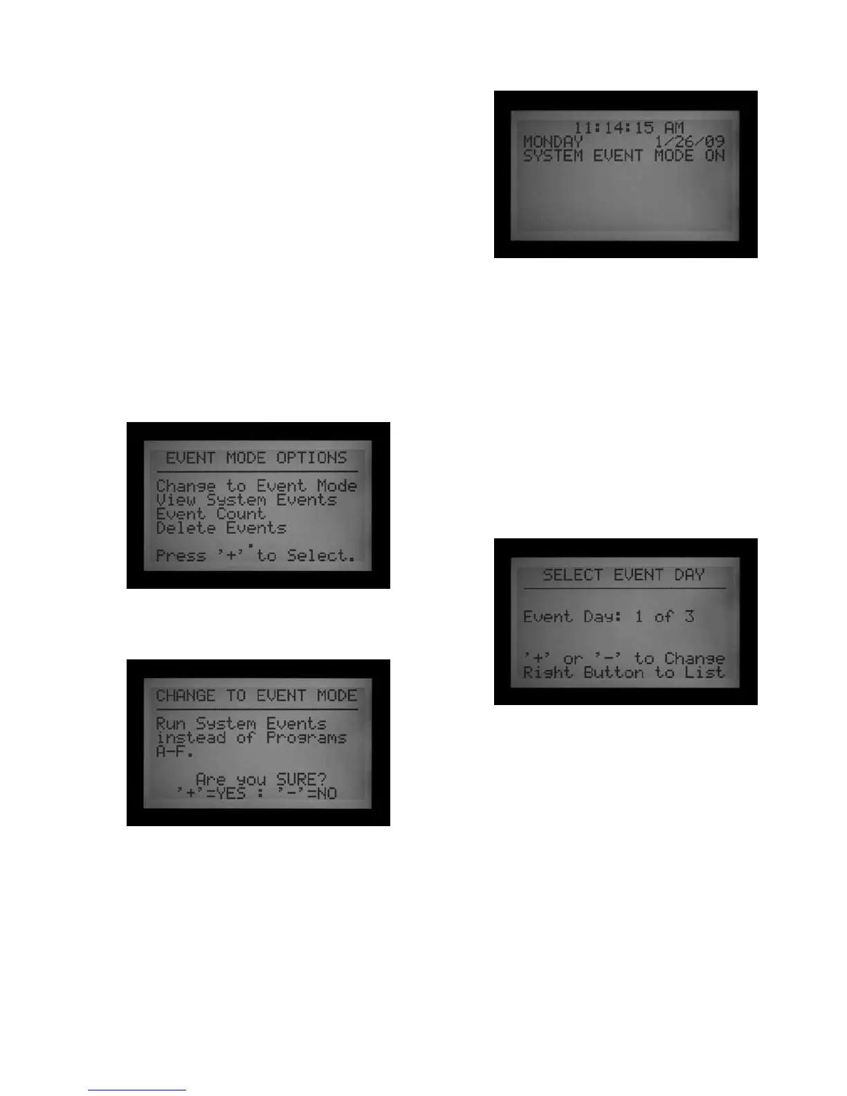 three other selectable screens. While in the Event Mode