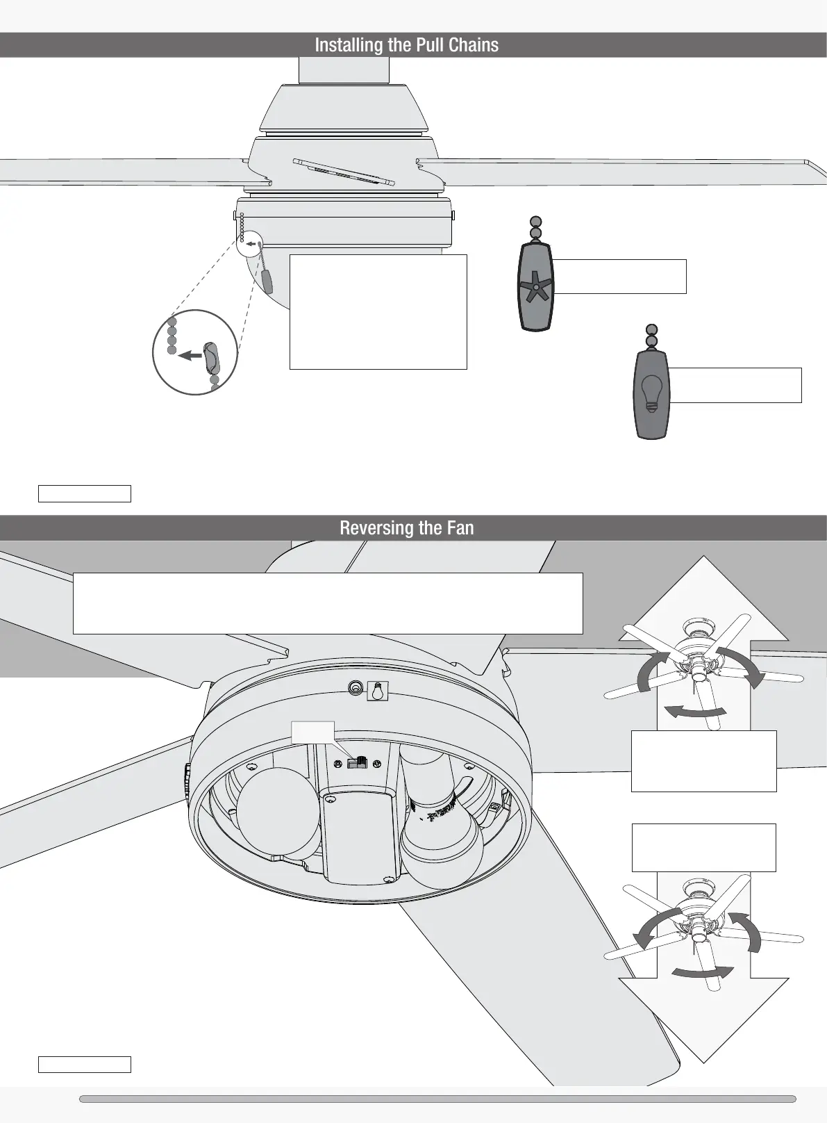 direction of air ow, turn the fan off and let it come to a complete stop. The reversing switch is located inside the light