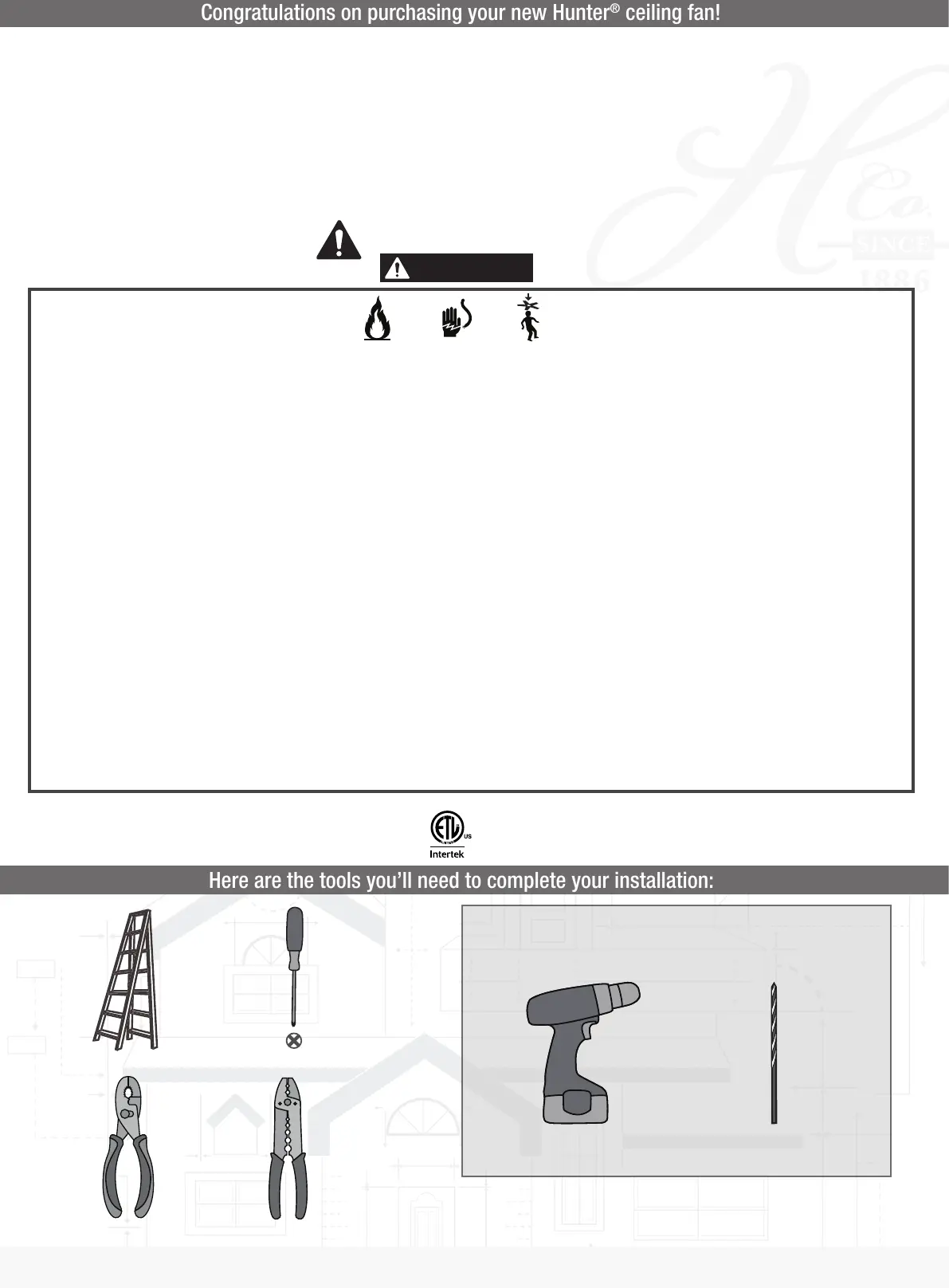 w.1 - To reduce the risk of re, electrical shock, or personal injury, mount fan directly from building structure and/or an outlet box marked acceptable for fan support of 70 lbs (31.8 kg) and use the