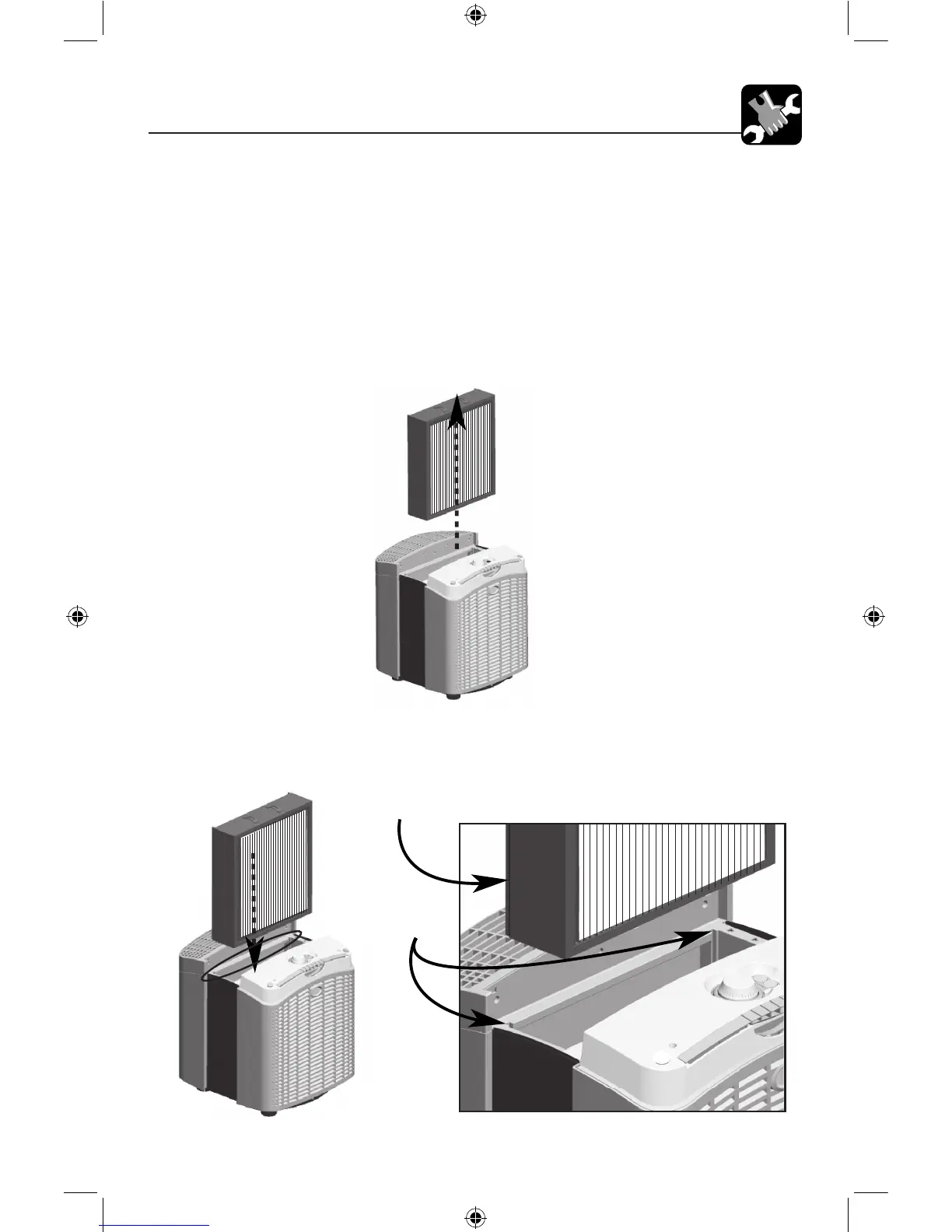 2. Install a new Main Filter. Make certain the ridges on the Main Filter line up with