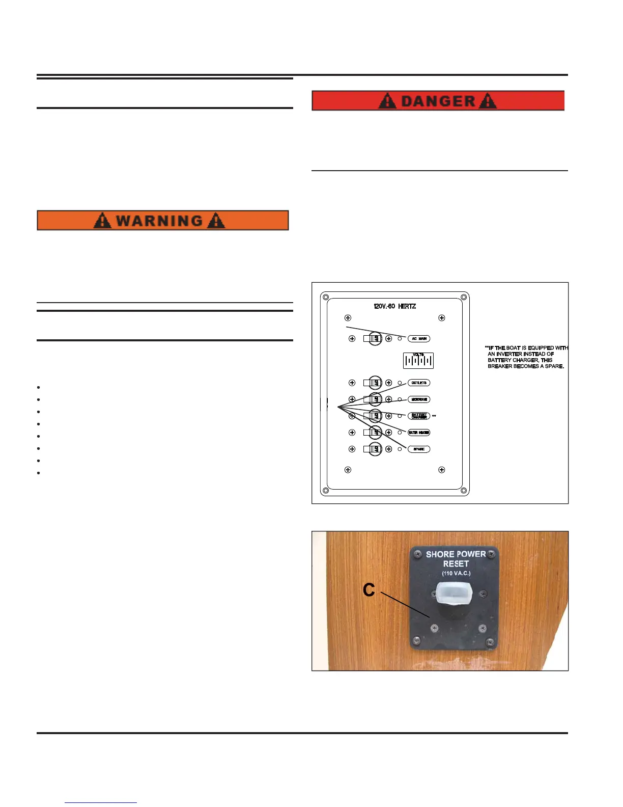 shore power hookup located aft. Circuit breaker for AC