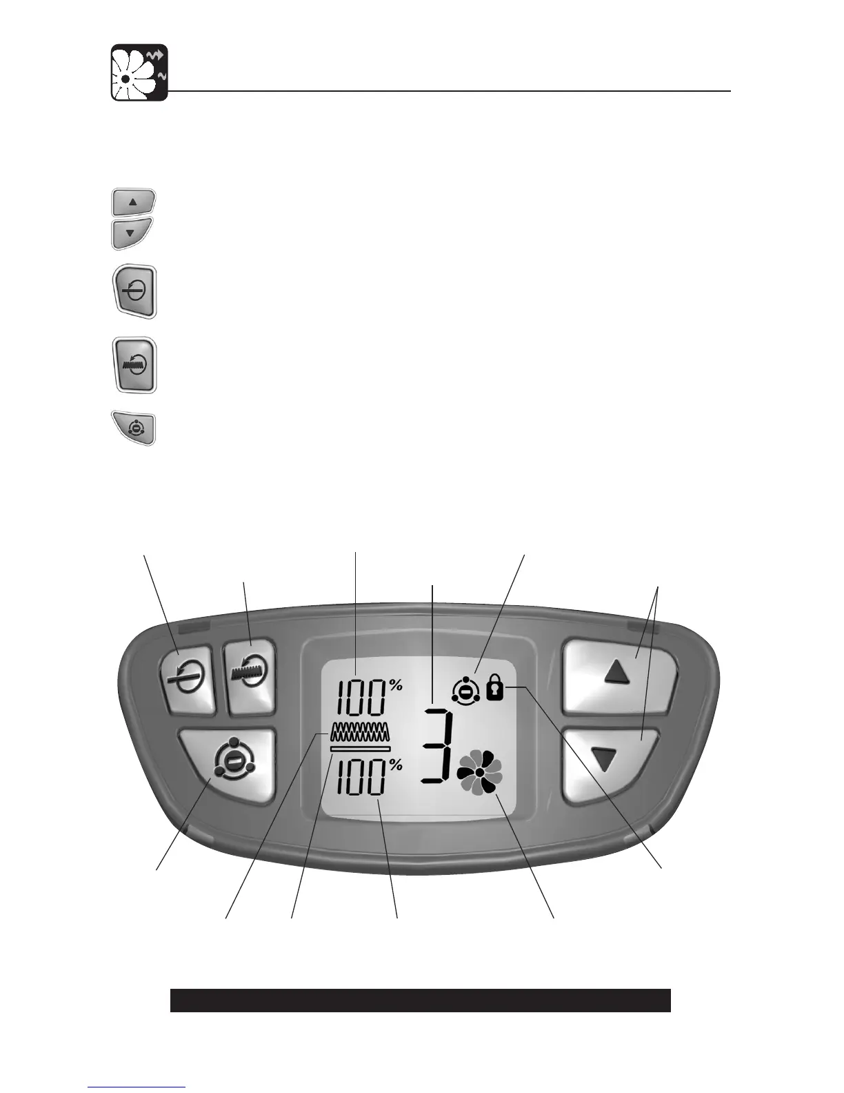 TECLAS ARRIBA/ABAJO: Ajusta la velocidad del ventilador y enciende y apaga la