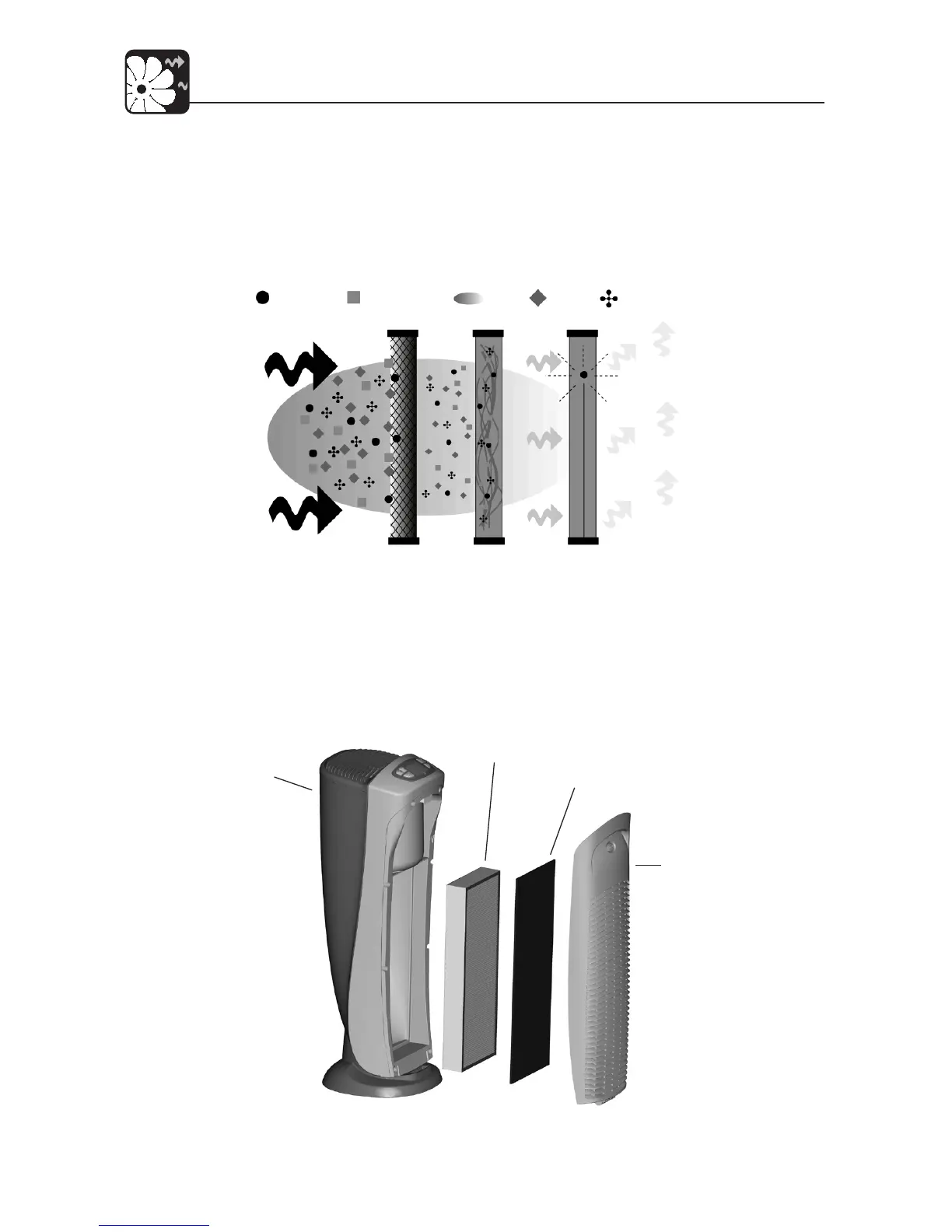 As the air is pulled into the purier, the activated carbon pre-lter absorbs odors and