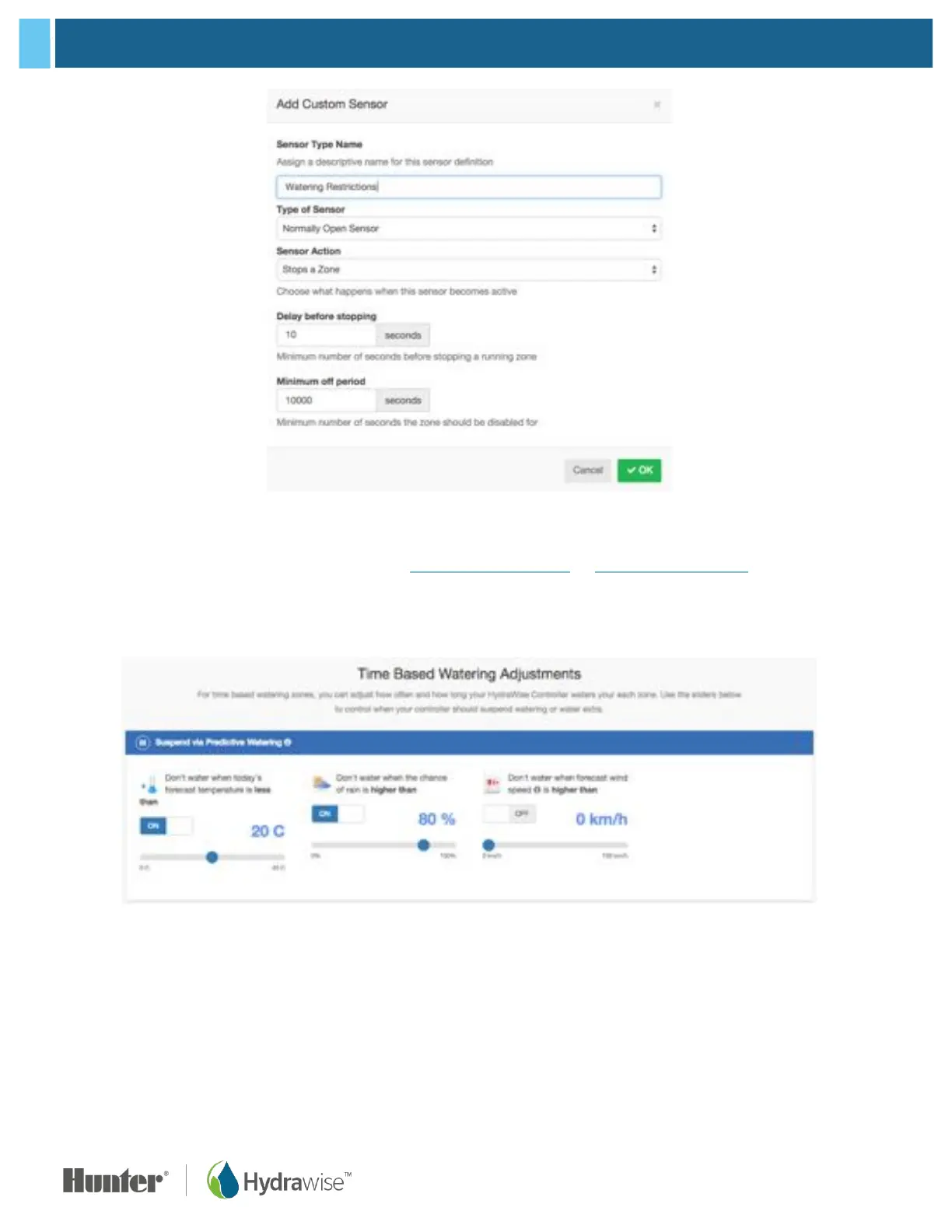 Forecast Temperature- Choose to suspend watering when the forecast temperature is less