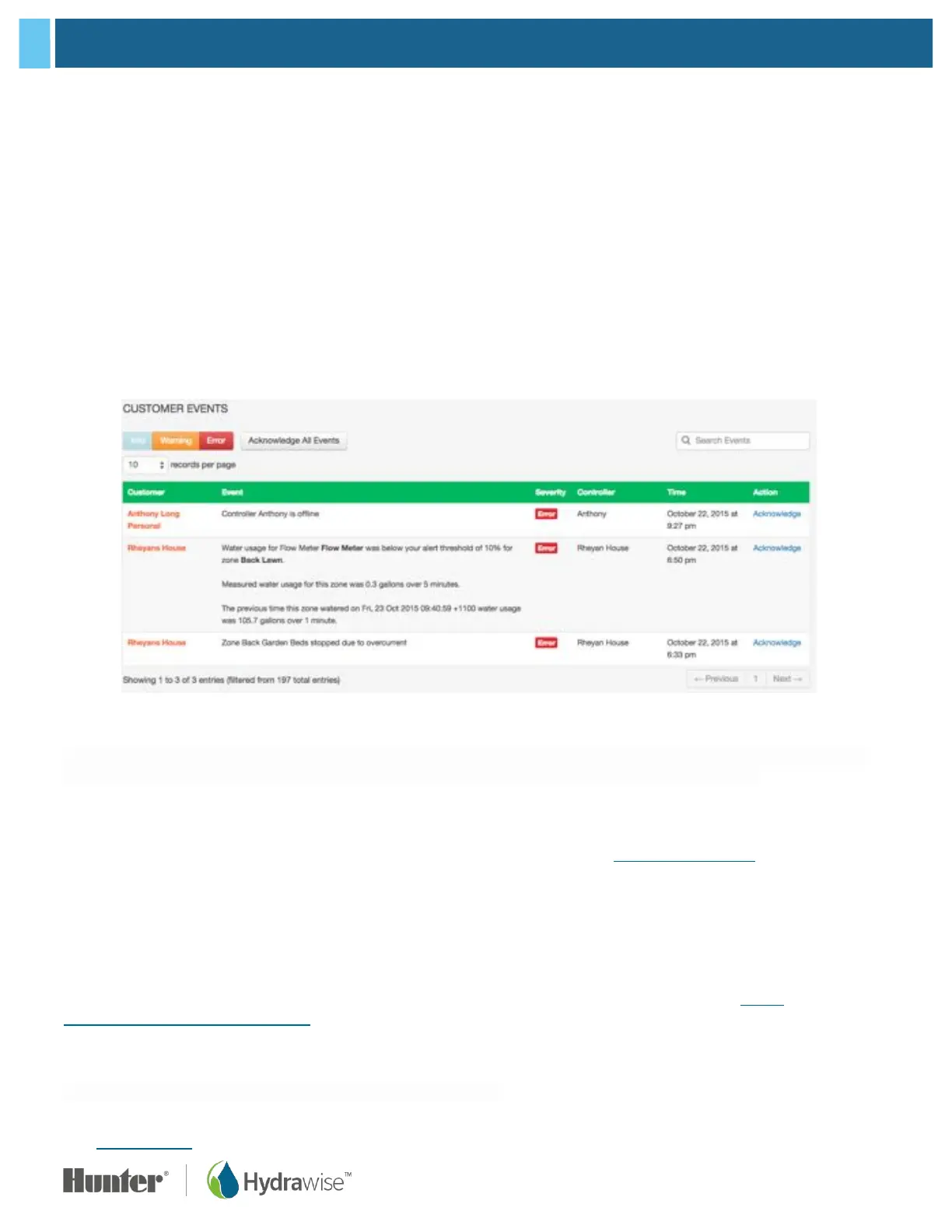 This section shows all events for your customers’ controllers, with the most recent events at the top. Events