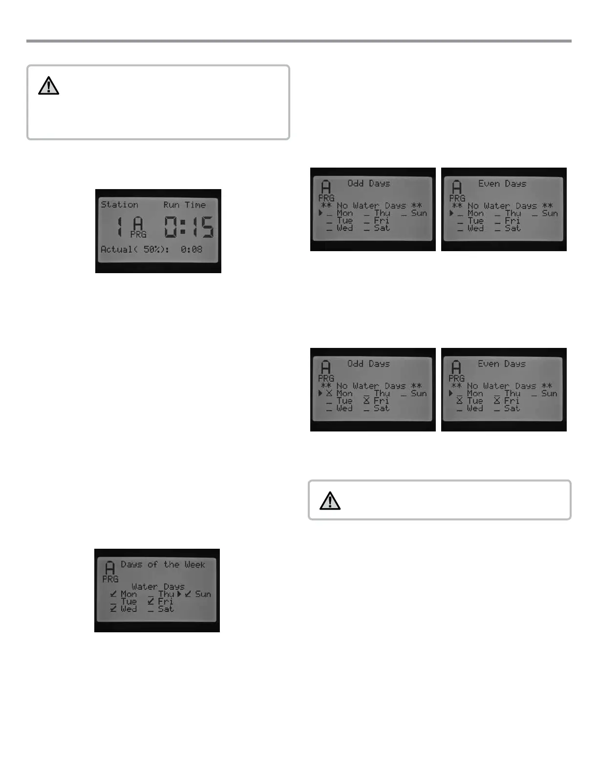 4. In either the Odd or Even Days mode, there will be a **NO WATER