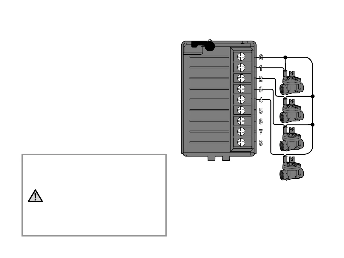 2. At valves, attach a common wire to either solenoid wire of all valves.