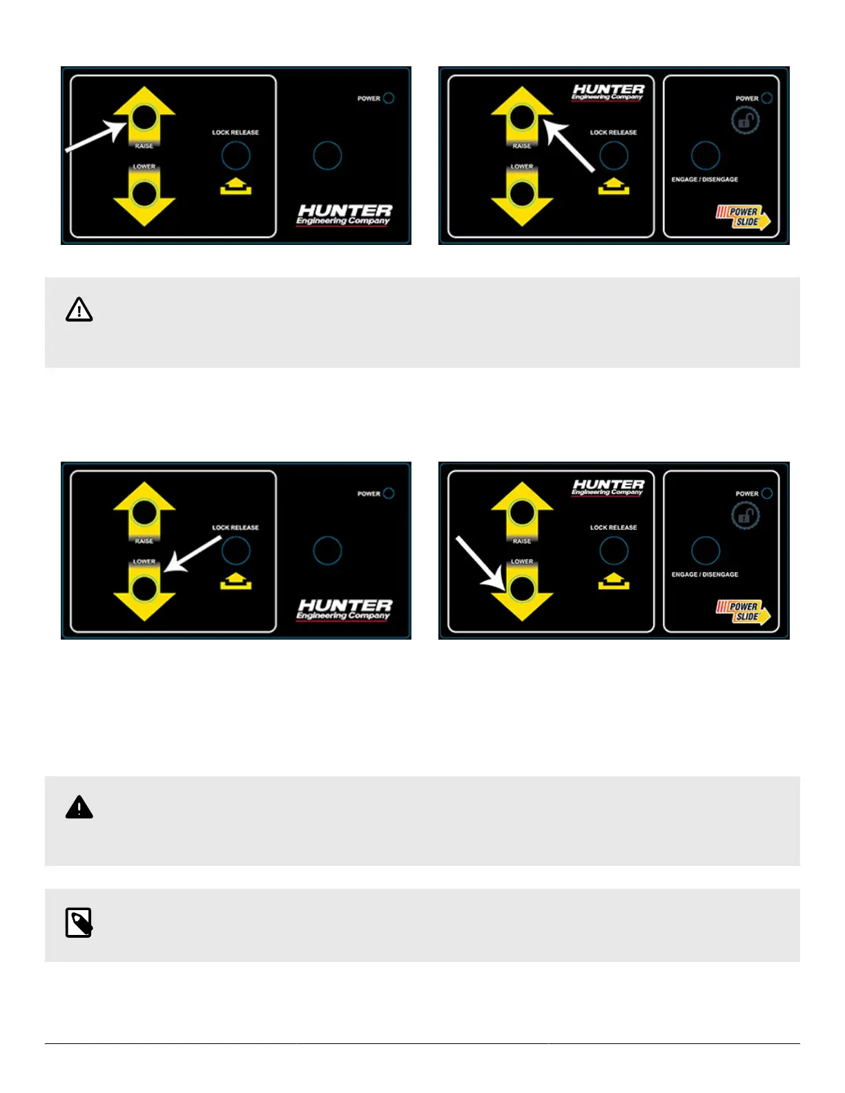 Depress and hold the “RAISE” button until the lift rises off the locks (approximately 1 inch [25 mm]).