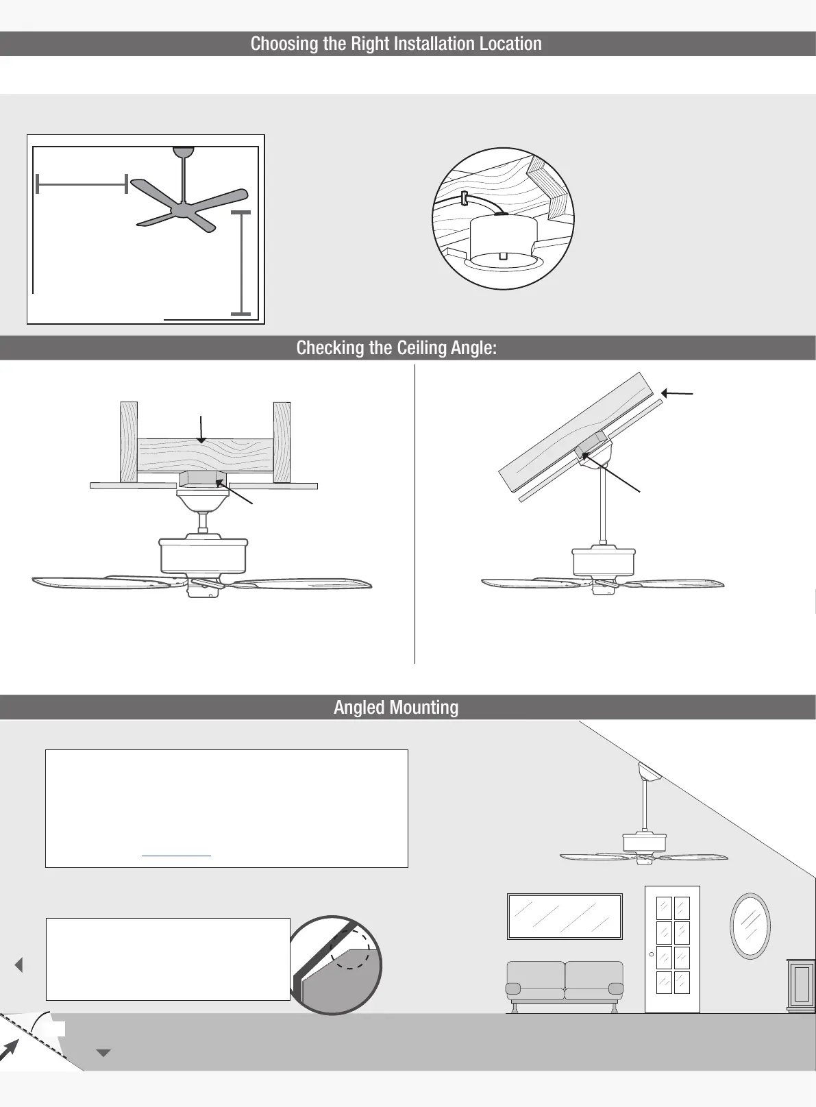 Angled Mounting Kit. Longer downrods and the Angled Mounting Kit are