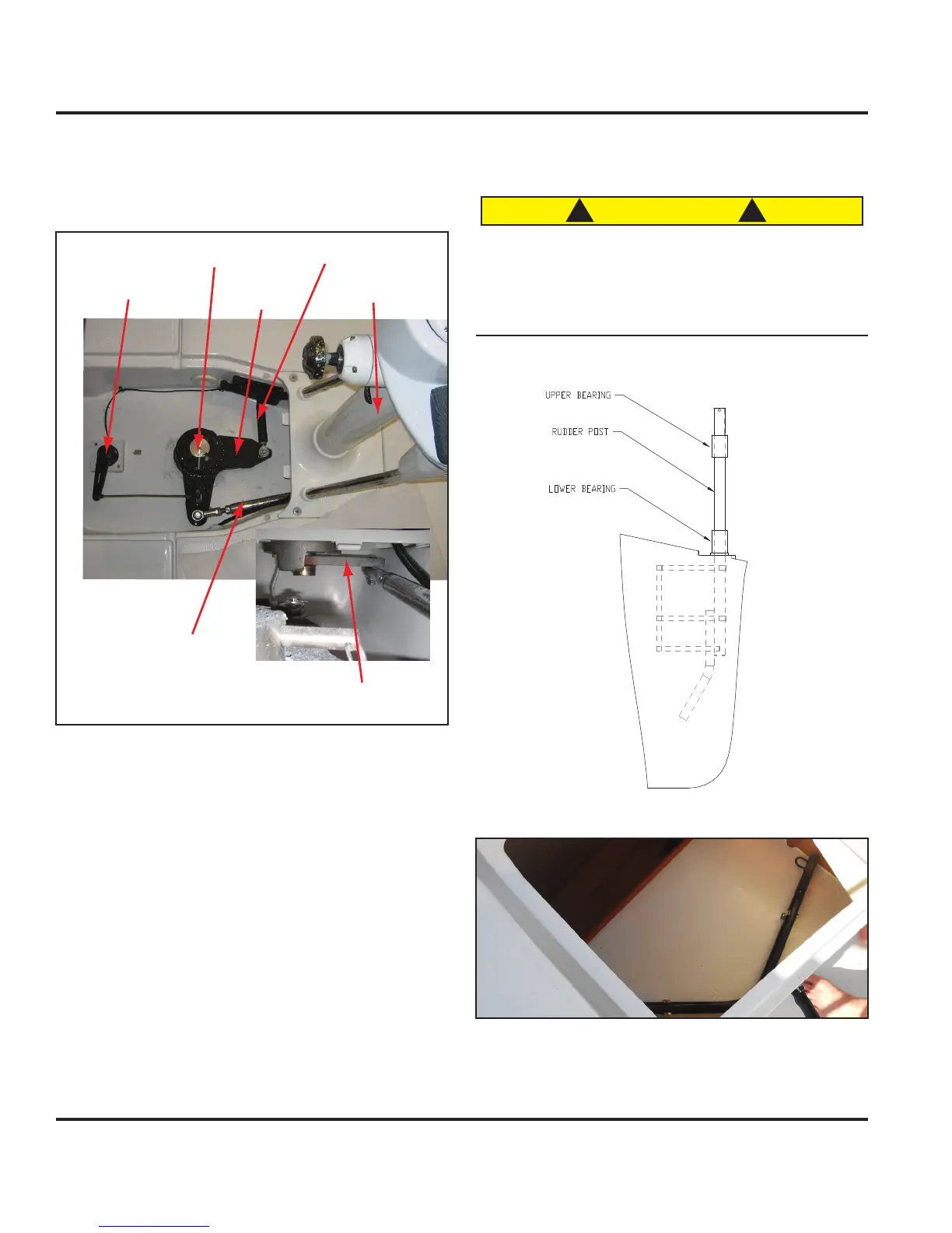 inspect the rudder’s upper bearing, lower bearing and