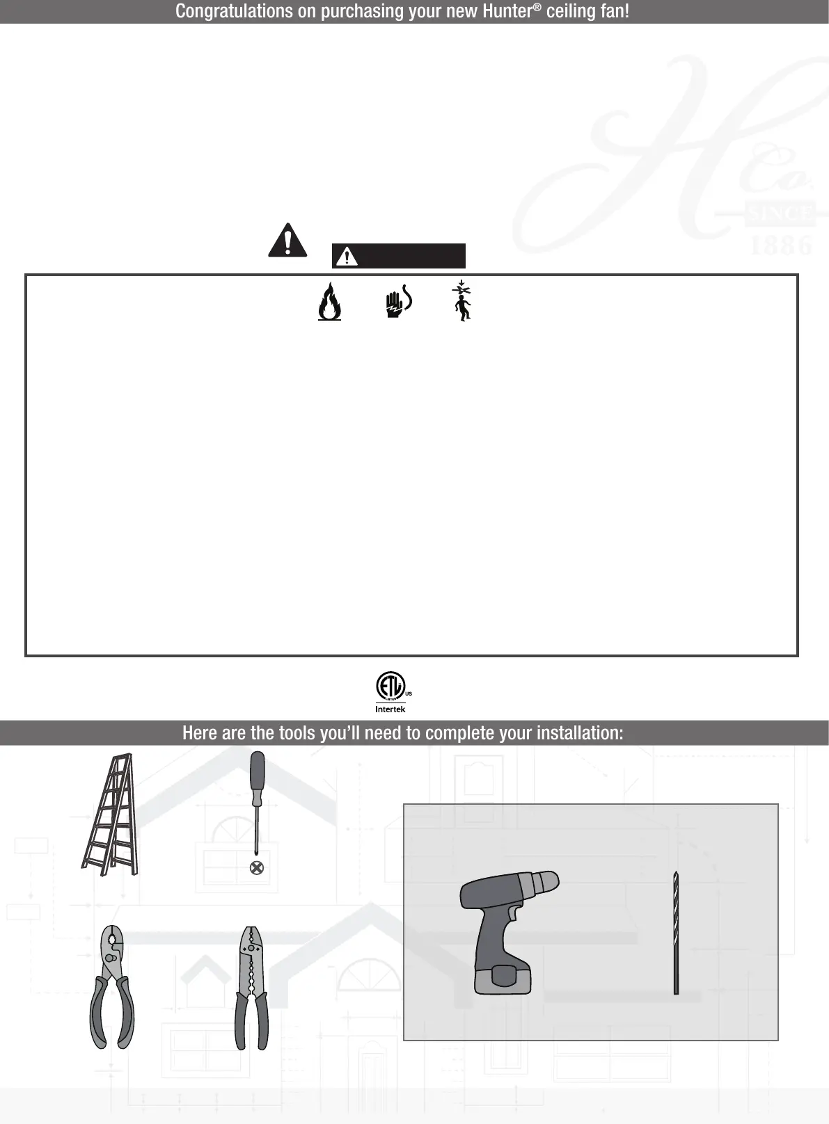 w.1 - To reduce the risk of re, electrical shock, or personal injury, mount fan directly from building structure and/or an outlet box marked acceptable for fan support of 70 lbs (31.8 kg) and use the