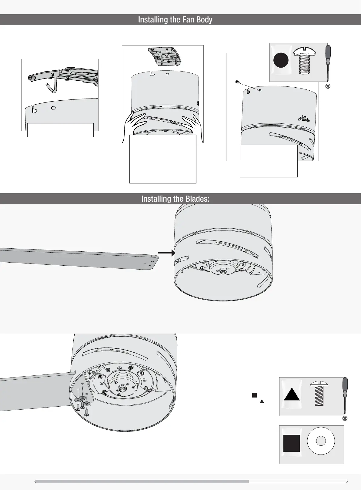 hardware bag. Then install the blade screws to