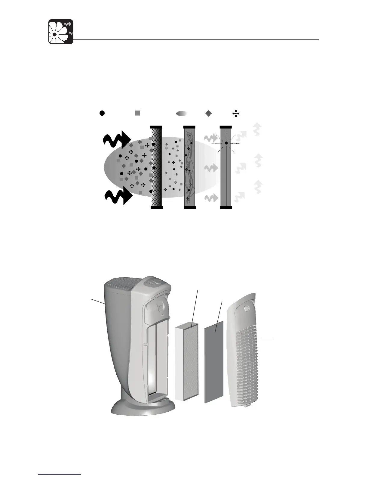 As the air is pulled into the purier, the activated carbon pre-lter absorbs odors and