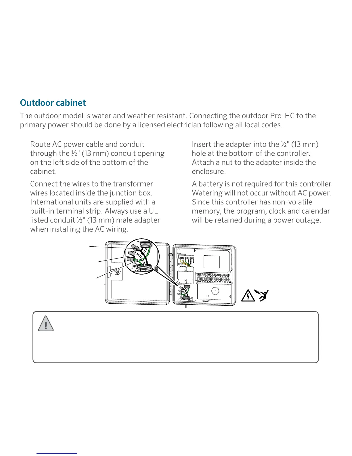 conduit with male adapter when installing AC wiring. Pro-HC controllers are