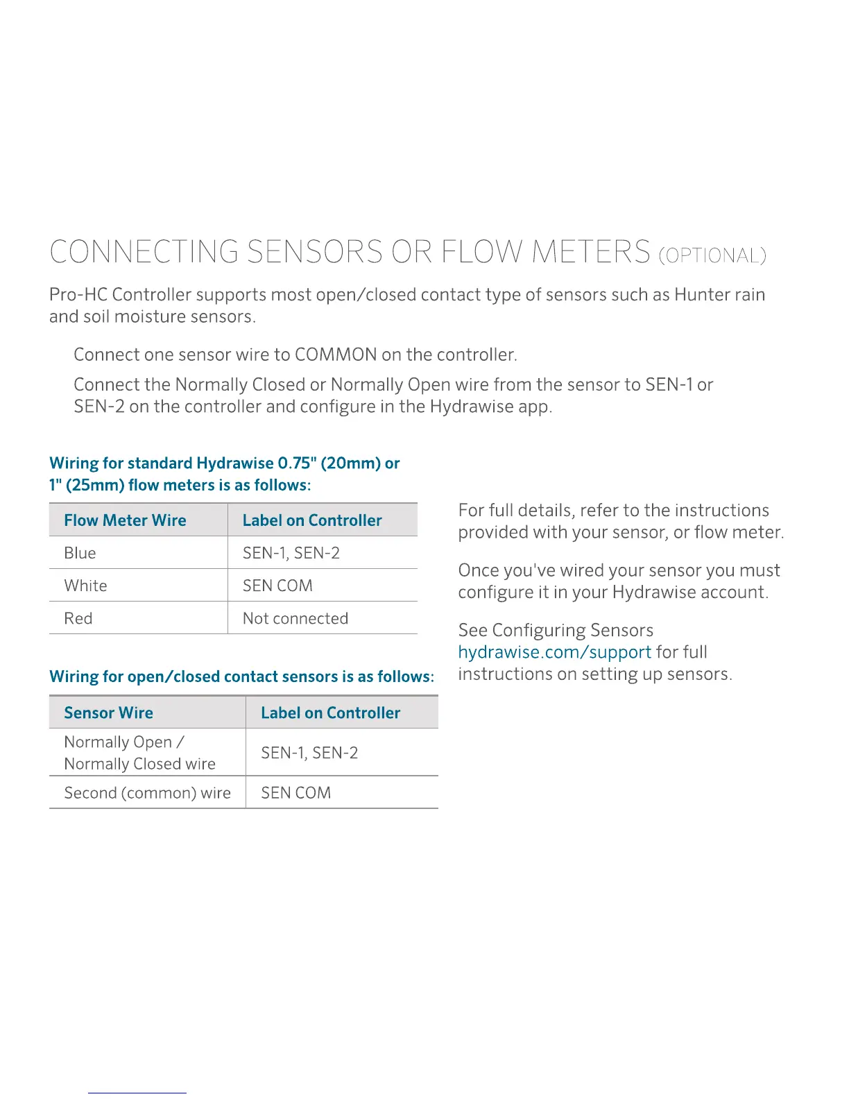 Wiring for standard Hydrawise 0.75" (20mm) or