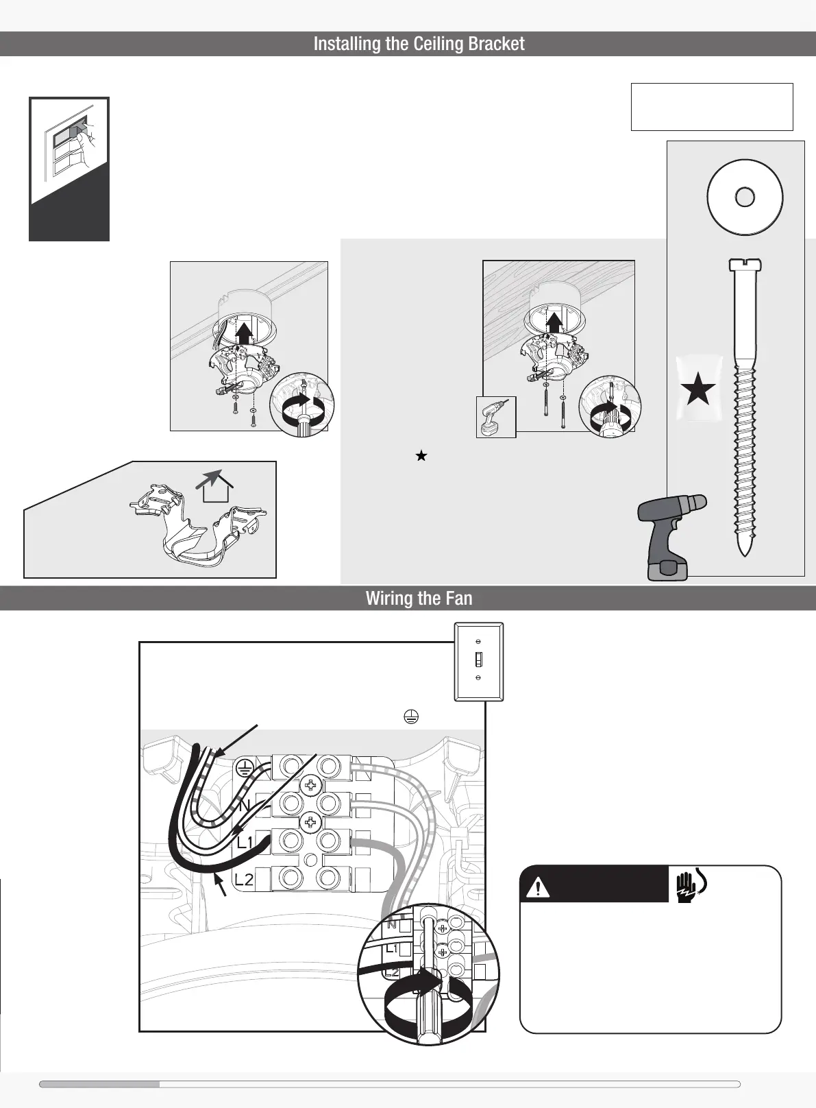 bracket prior to installation. Only use the provided Hunter ceiling bracket that came in your fan’s box.