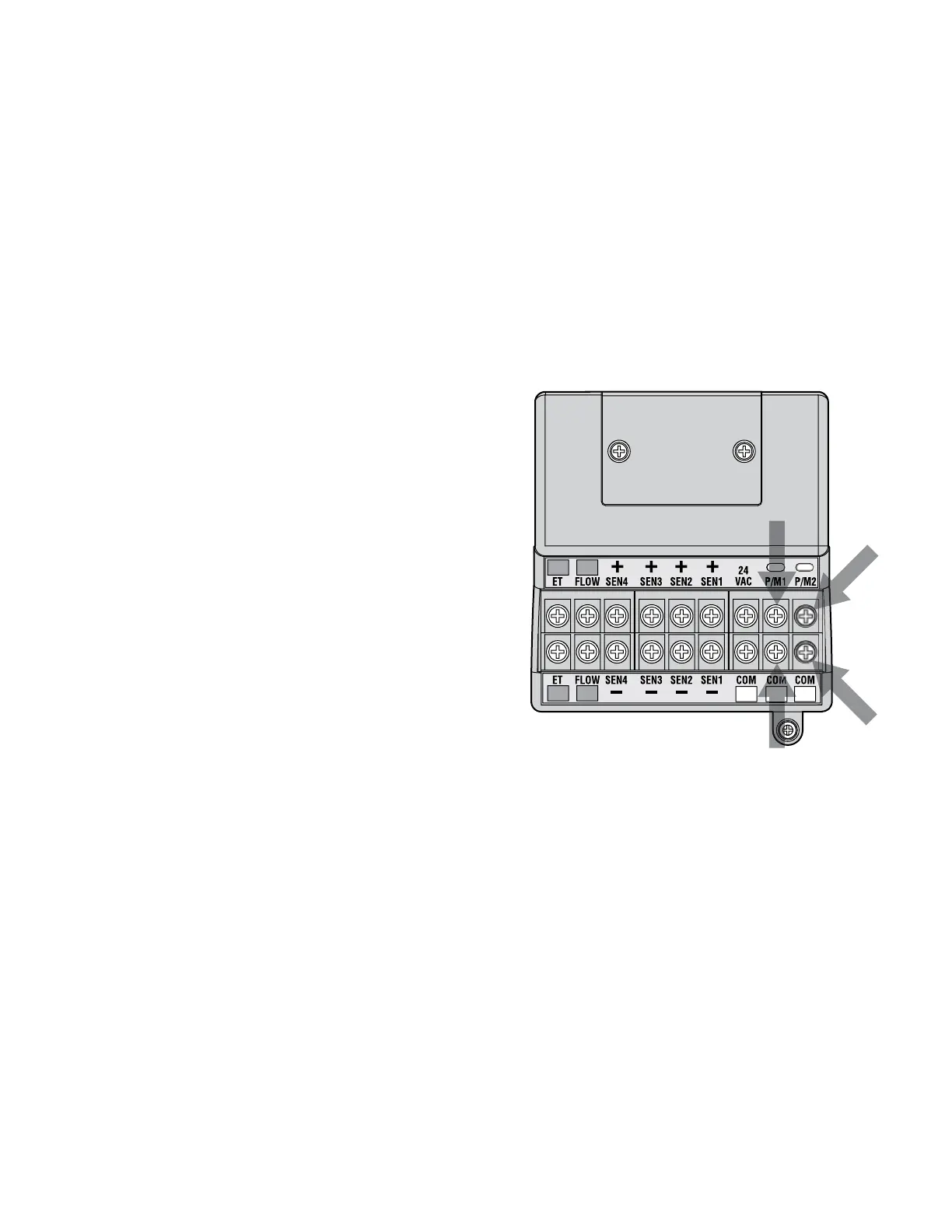Locate the P/M1 and P/M2 screw terminals on the Master