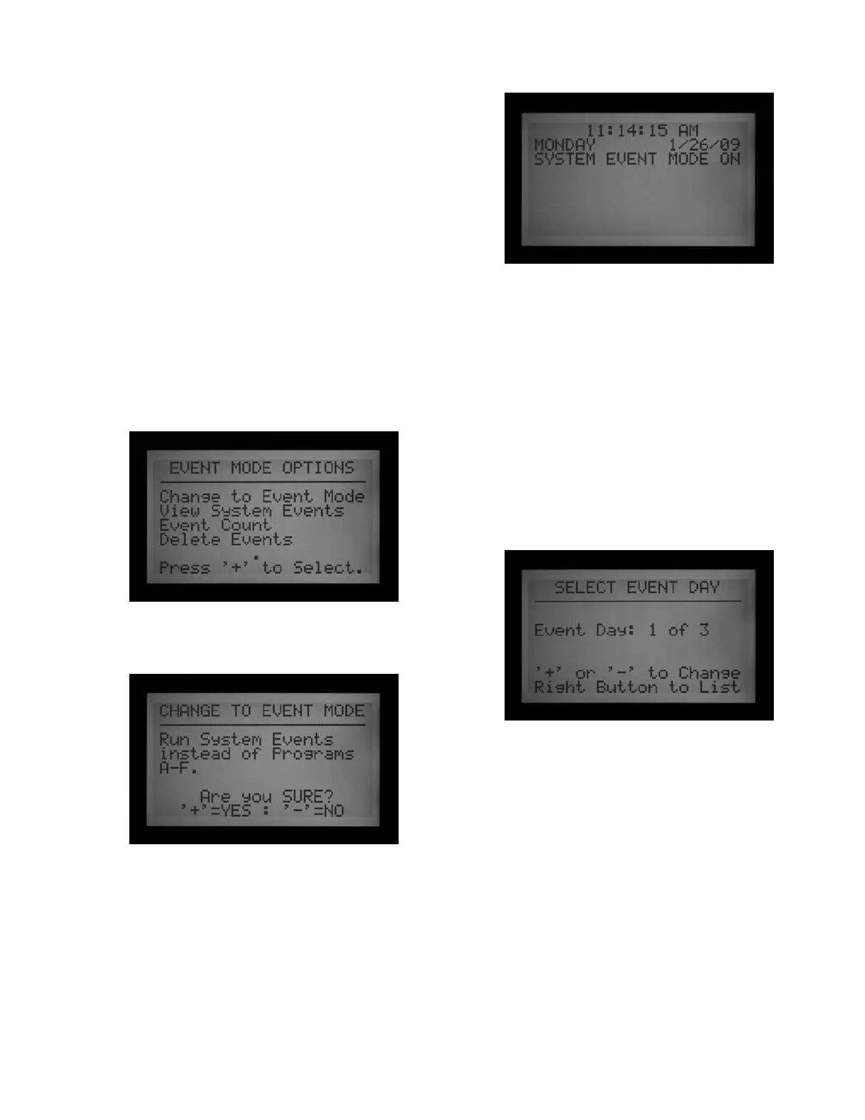 three other selectable screens. While in the Event Mode