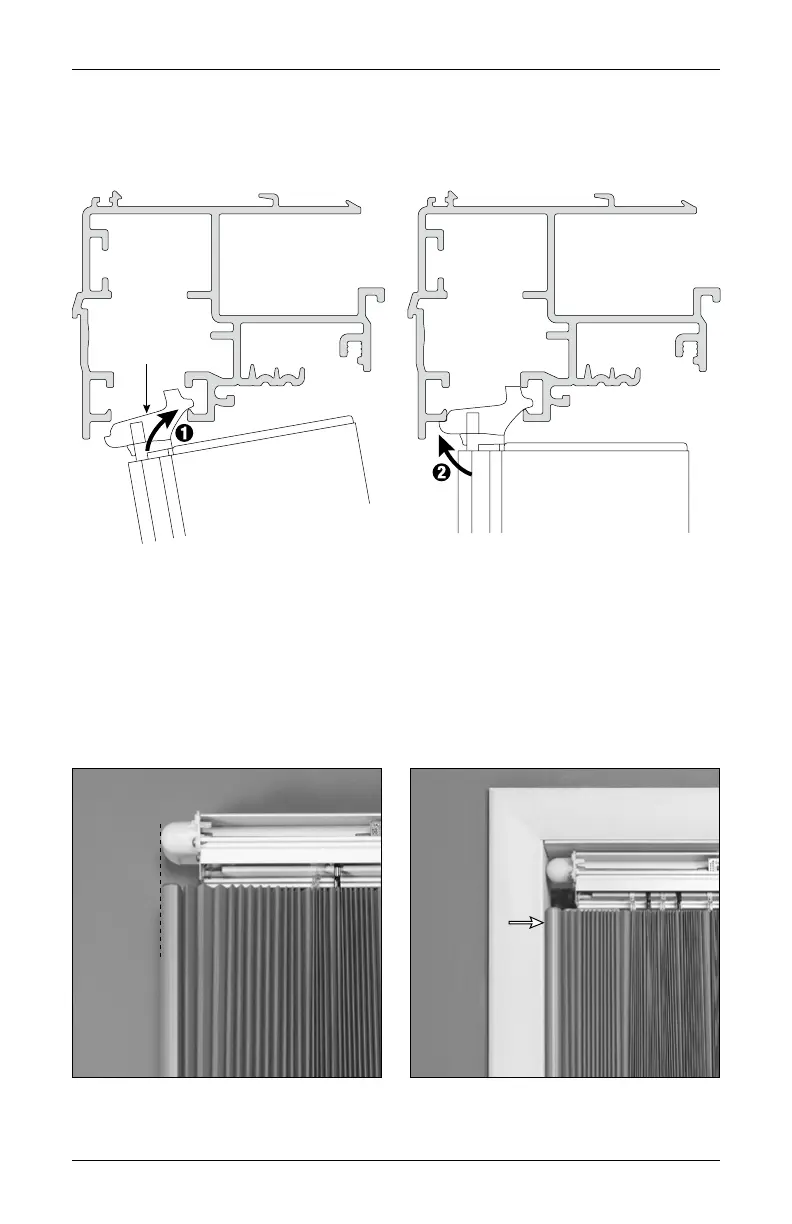 Hook the stationary rail bracket to the headrail as illustrated below.