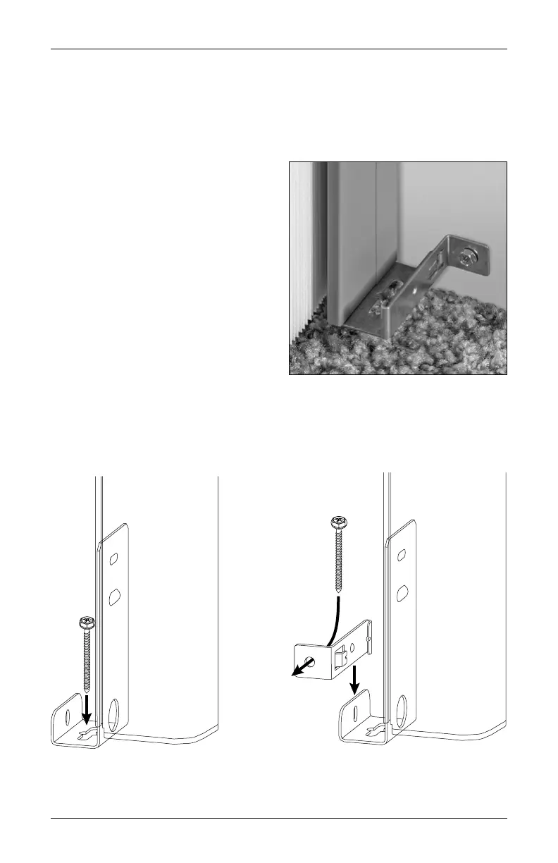 Floor or sill attachment: Attach the stationary rail bottom bracket using the screw
