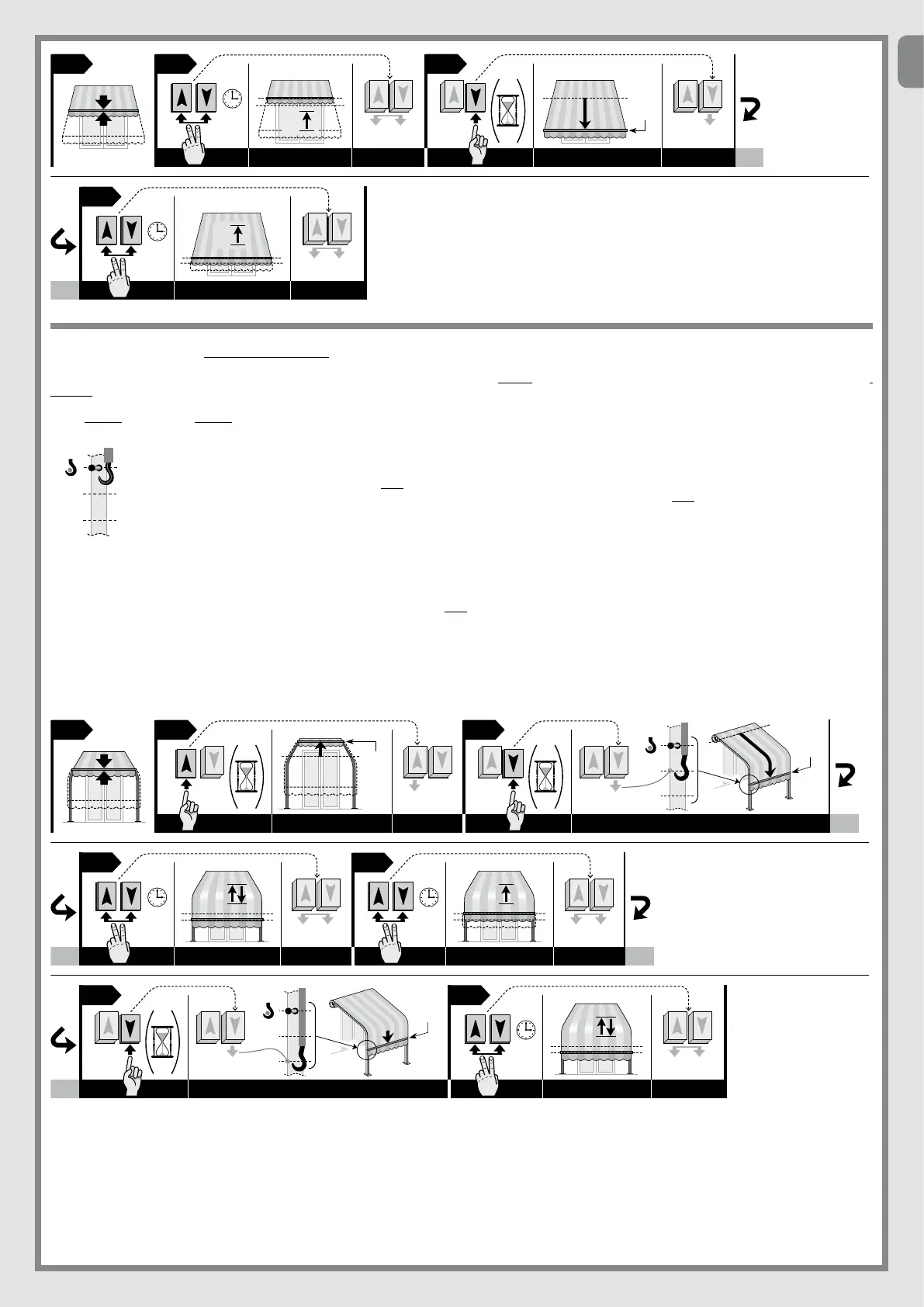 05. Tryck på upp- och ned-knappen samtidigt och håll dem nedtryckta tills markisen utför en kort rörelse uppåt. Släpp sedan upp de två knapparna.