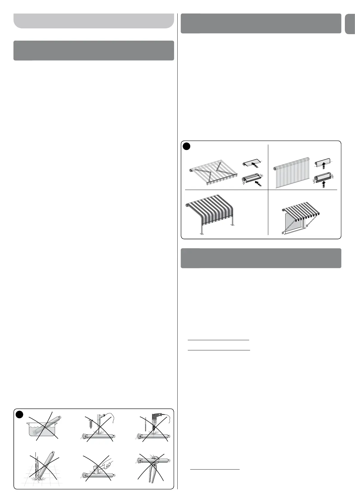 •Neveractivatetheawningifmaintenanceworkisbeingperformed(e.g.anadja-