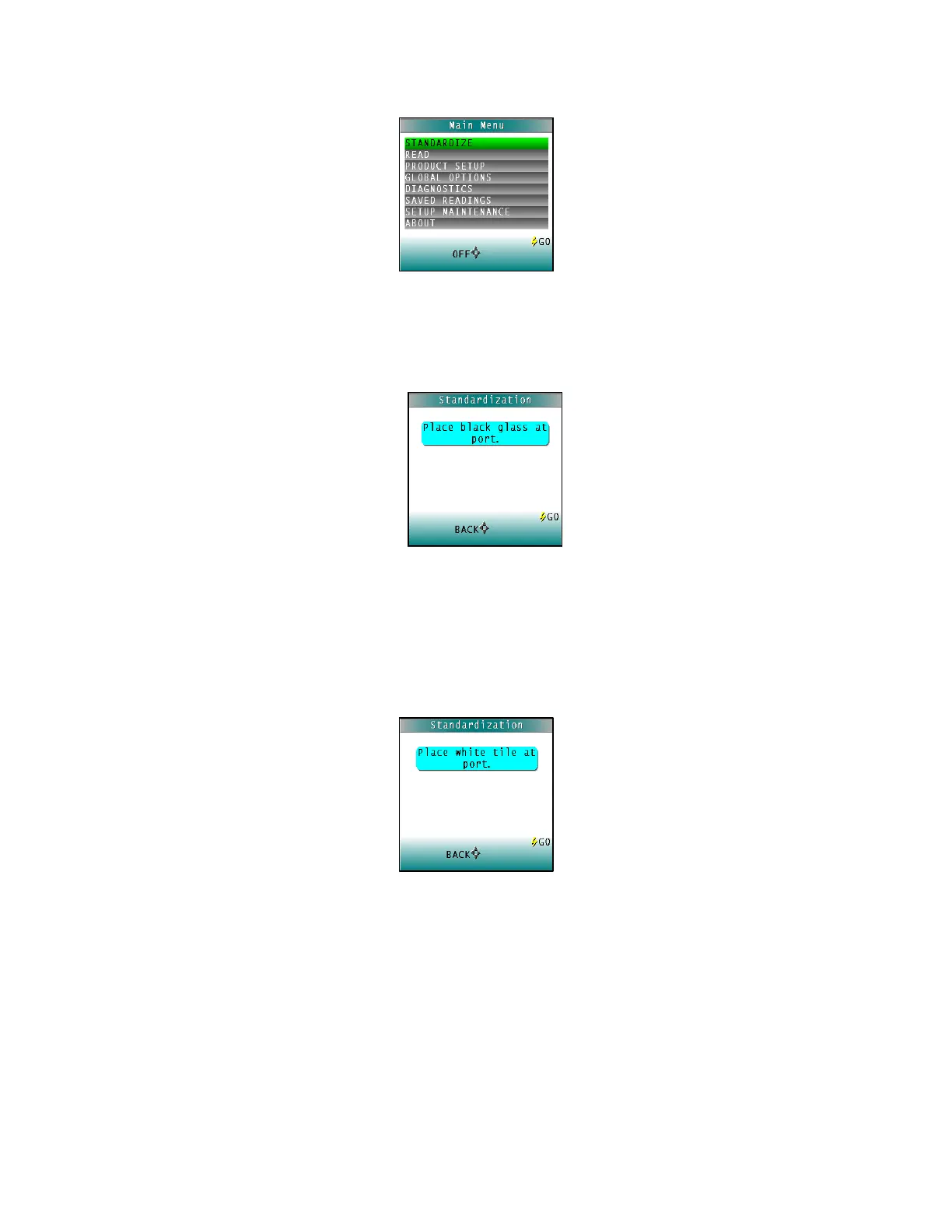 3. Press the GO button. The ColorFlex EZ reads the glass and sets the instrument zero