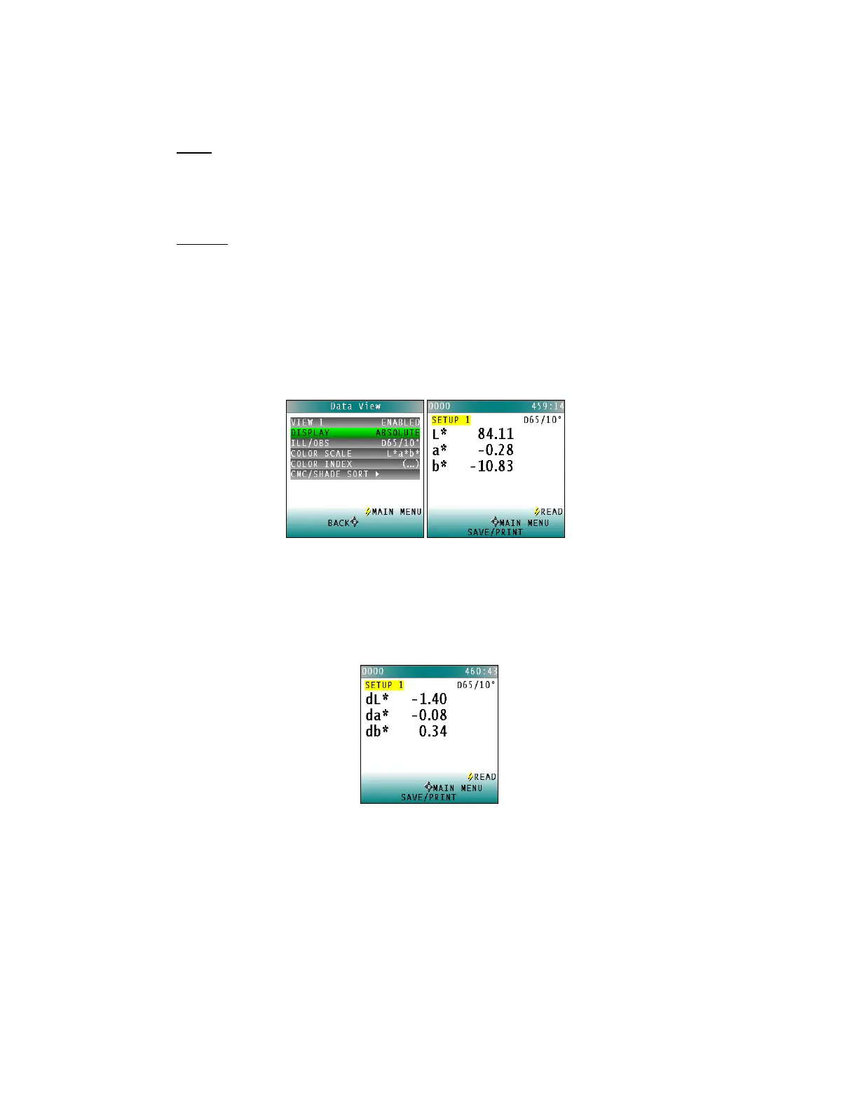 Absolute displays the color scale values (such as L*, a*, and b*) for the most