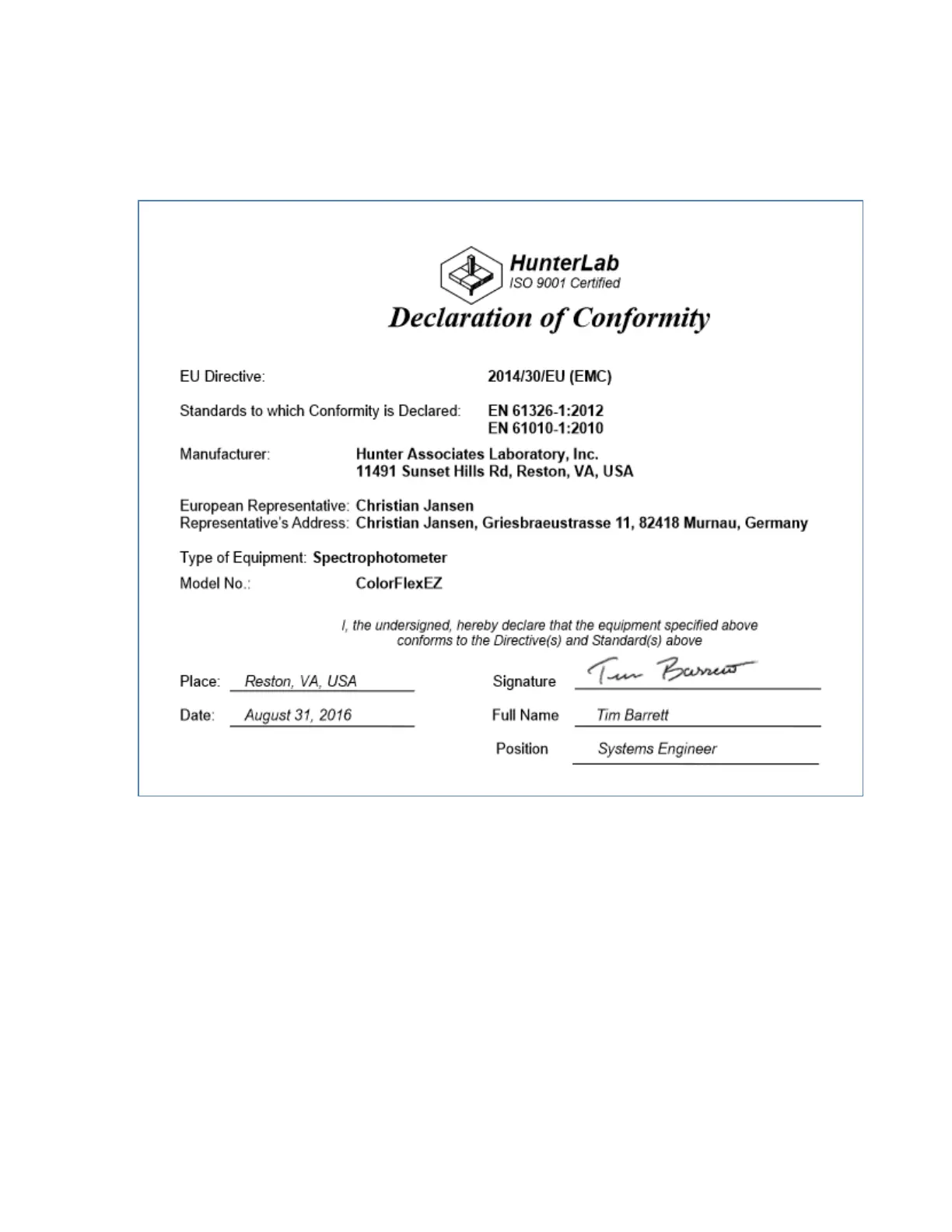 HunterLab ColorFlex EZ - Regulatory Notice