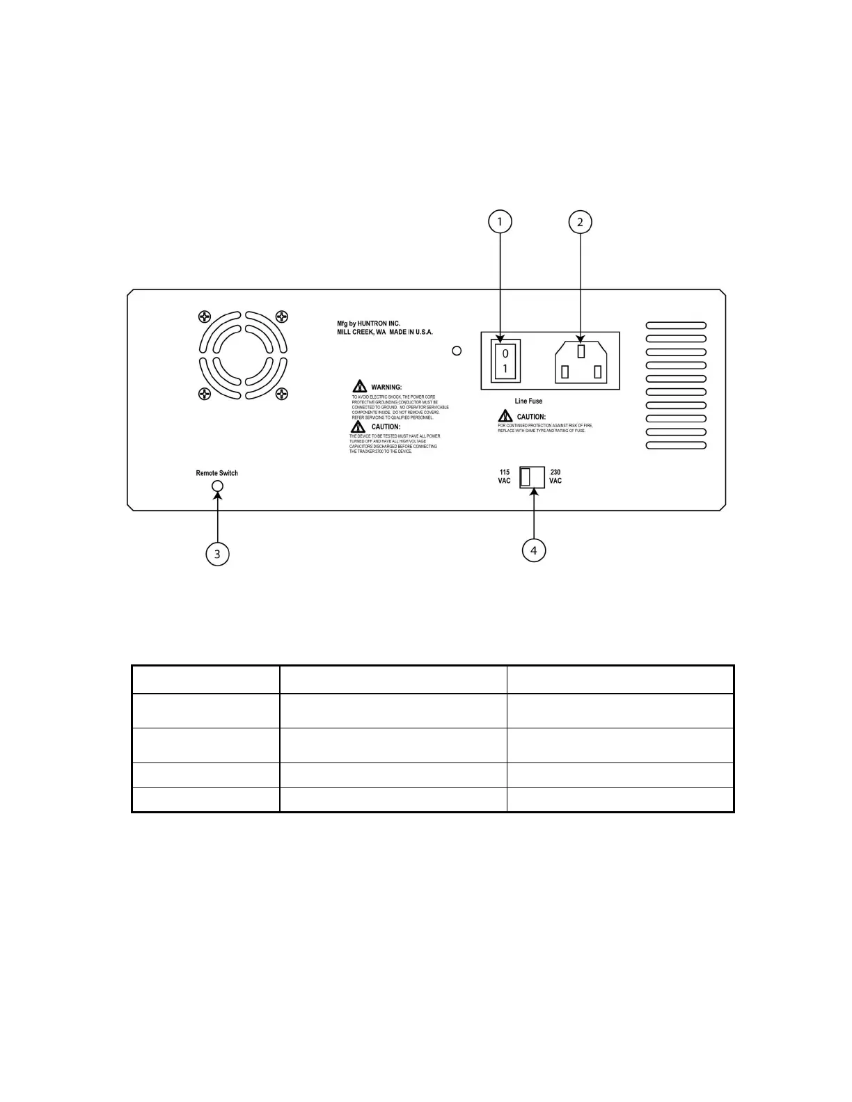 Table 2-2. Tracker 2700 Back Panel Connections.