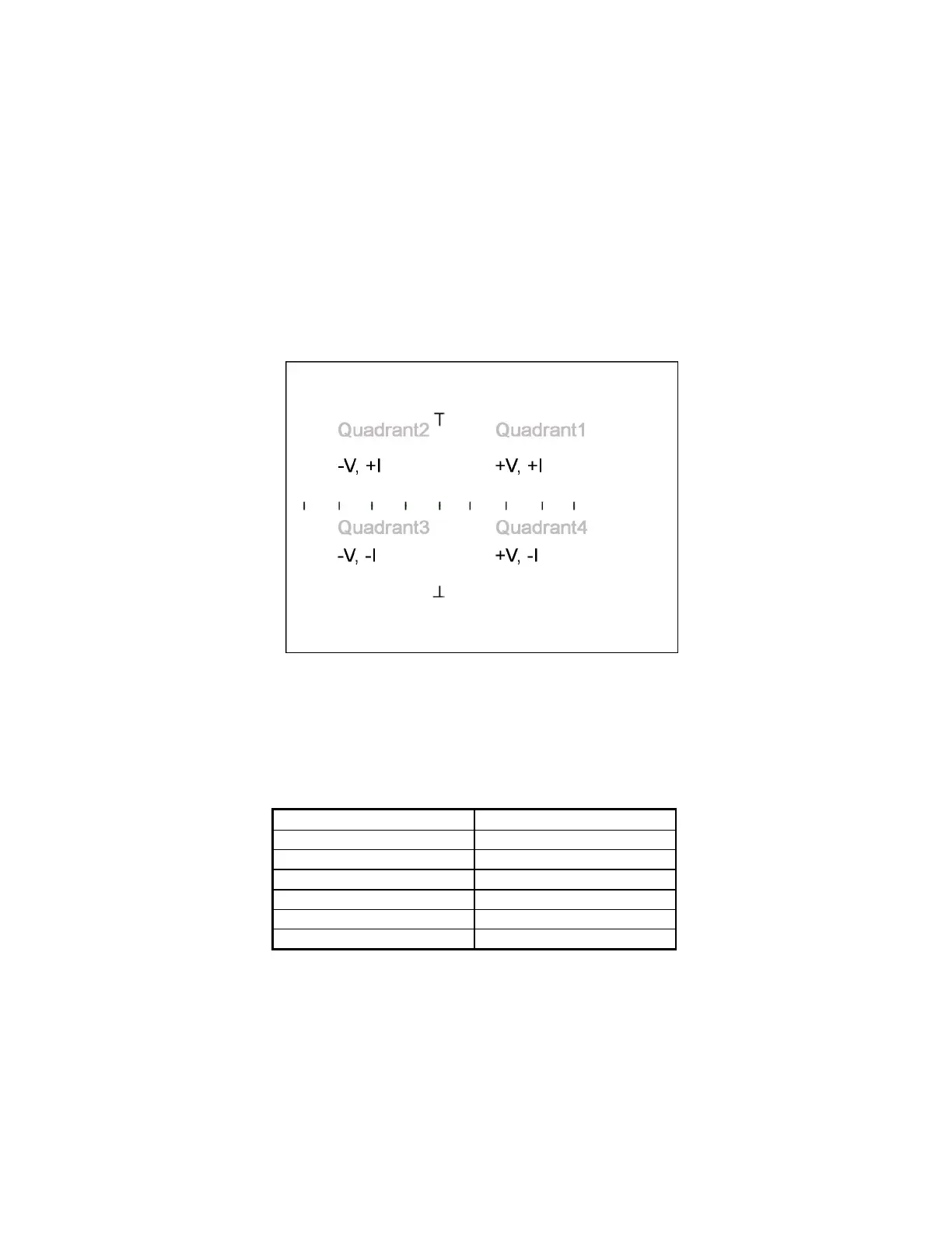 voltage (-V) and negative current (-I), and quadrant 4 displays positive voltage (+V) and negative