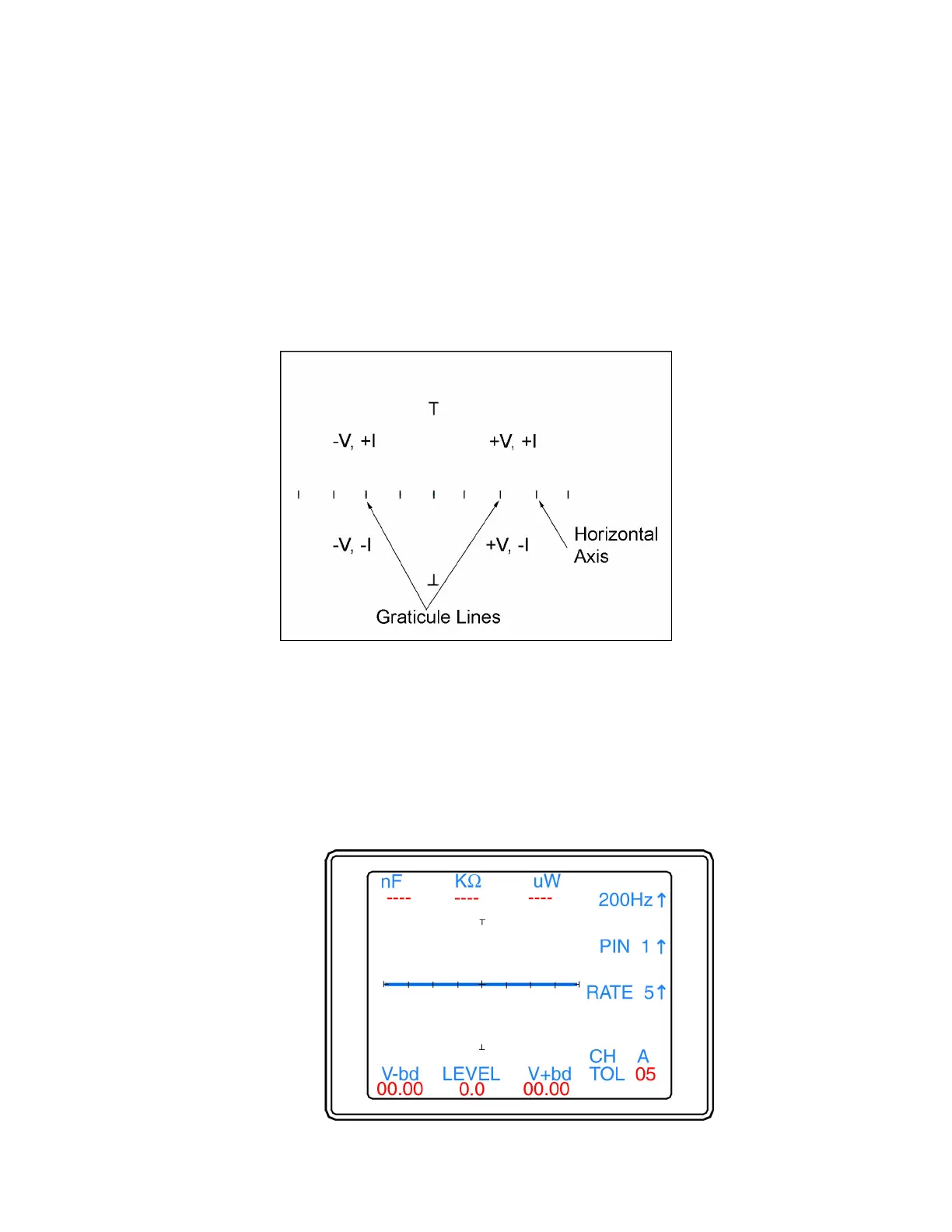 oscilloscope CRT. Each mark is approximately 1/4 of the peak range voltage. For example, in