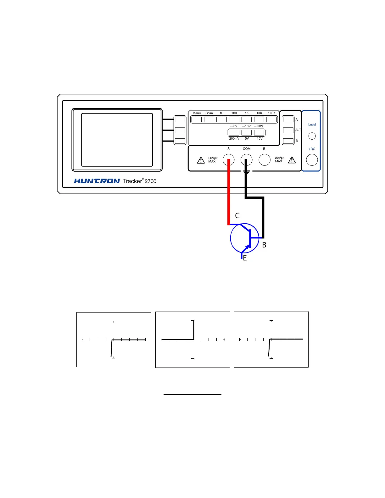 Figure 6-21. Tracker 2700 Connected to the Collector and Base Leads of a