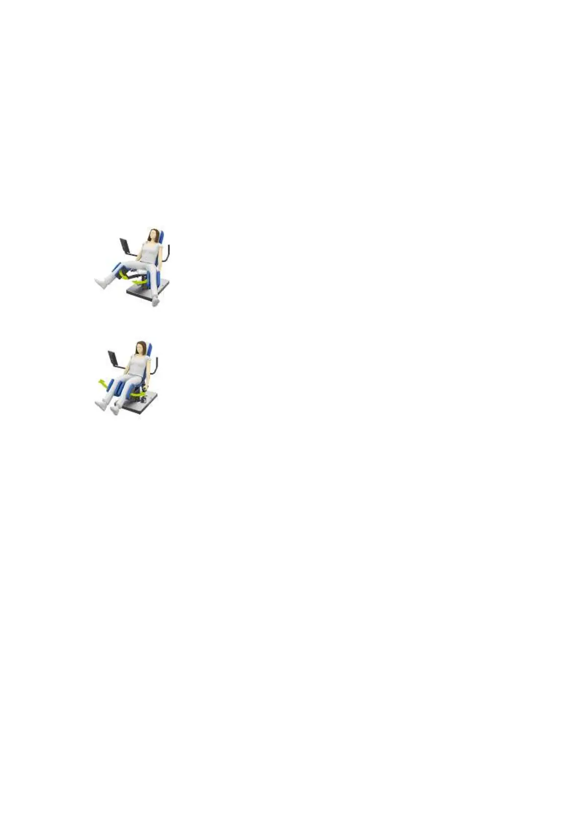 Equipment adjustment: Sit down and place your feet on the foot supports.