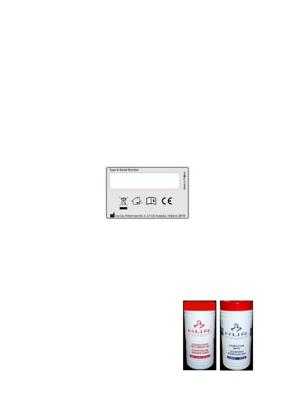 NOTE! It is recommended that you use only HUR Cleaning wipes and HUR Disinfection