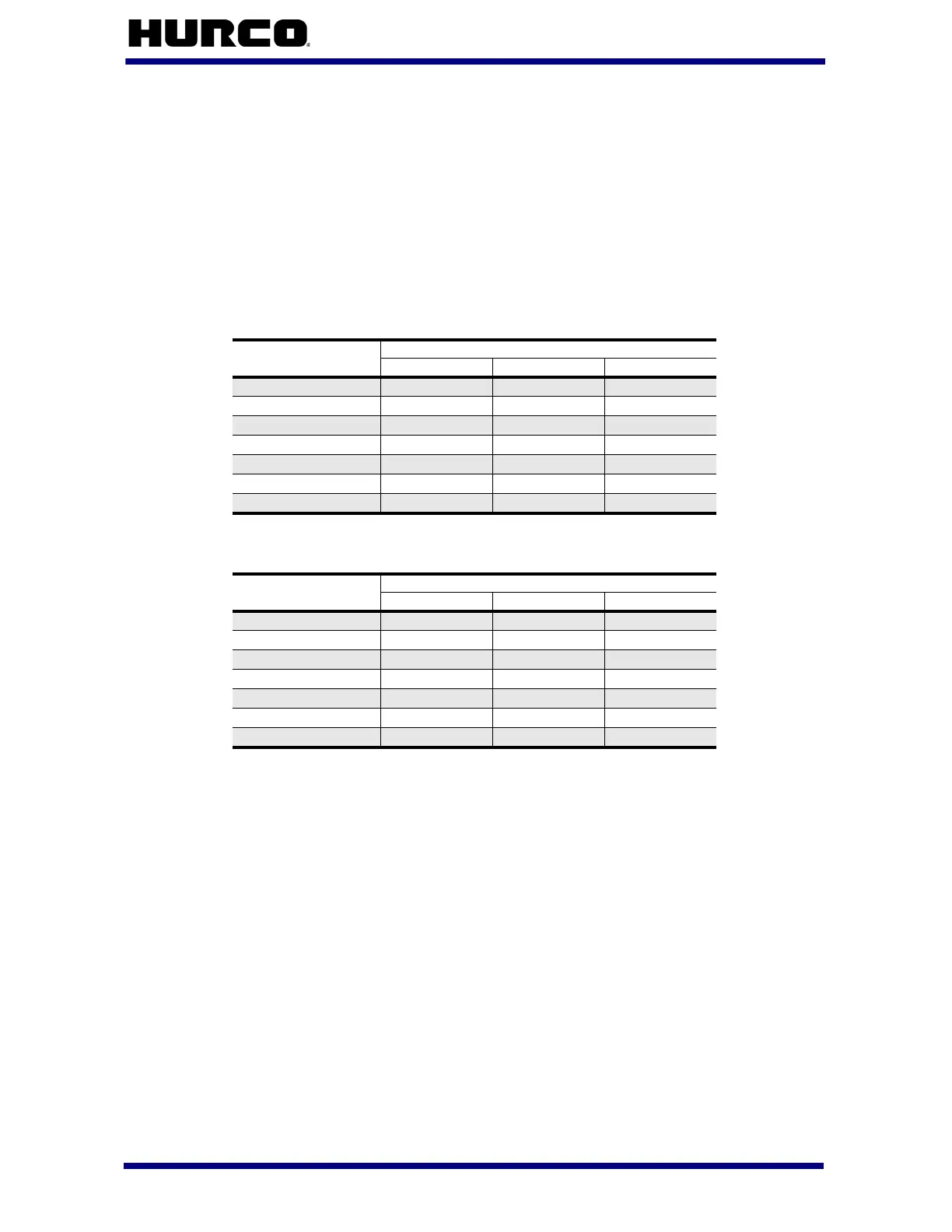 measurements. If NA is indicated, the axis is not available for the machine model.