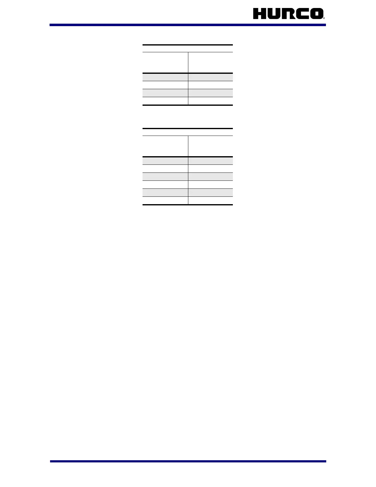 Hurco VM Series - Table 3-9. 20000 Max RPM Spindle Warm-Up; Table 3-10. 30000 Max RPM Spindle Warm-Up