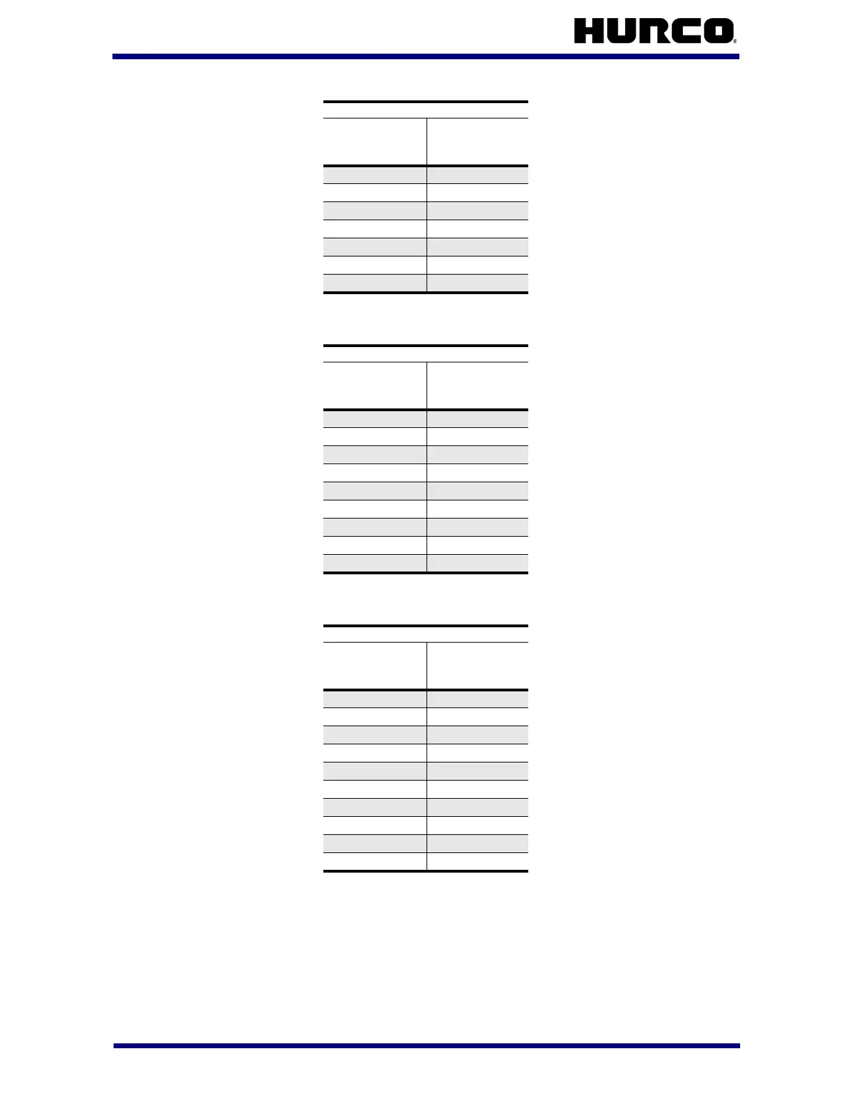 Hurco VM Series - Table 3-13. 10000 Max RPM Spindle Run-In or Cycle; Table 3-14. 12000 Max RPM Spindle Run-In or Cycle; Table 3-15. 15000 Max RPM Spindle Run-In or Cycle
