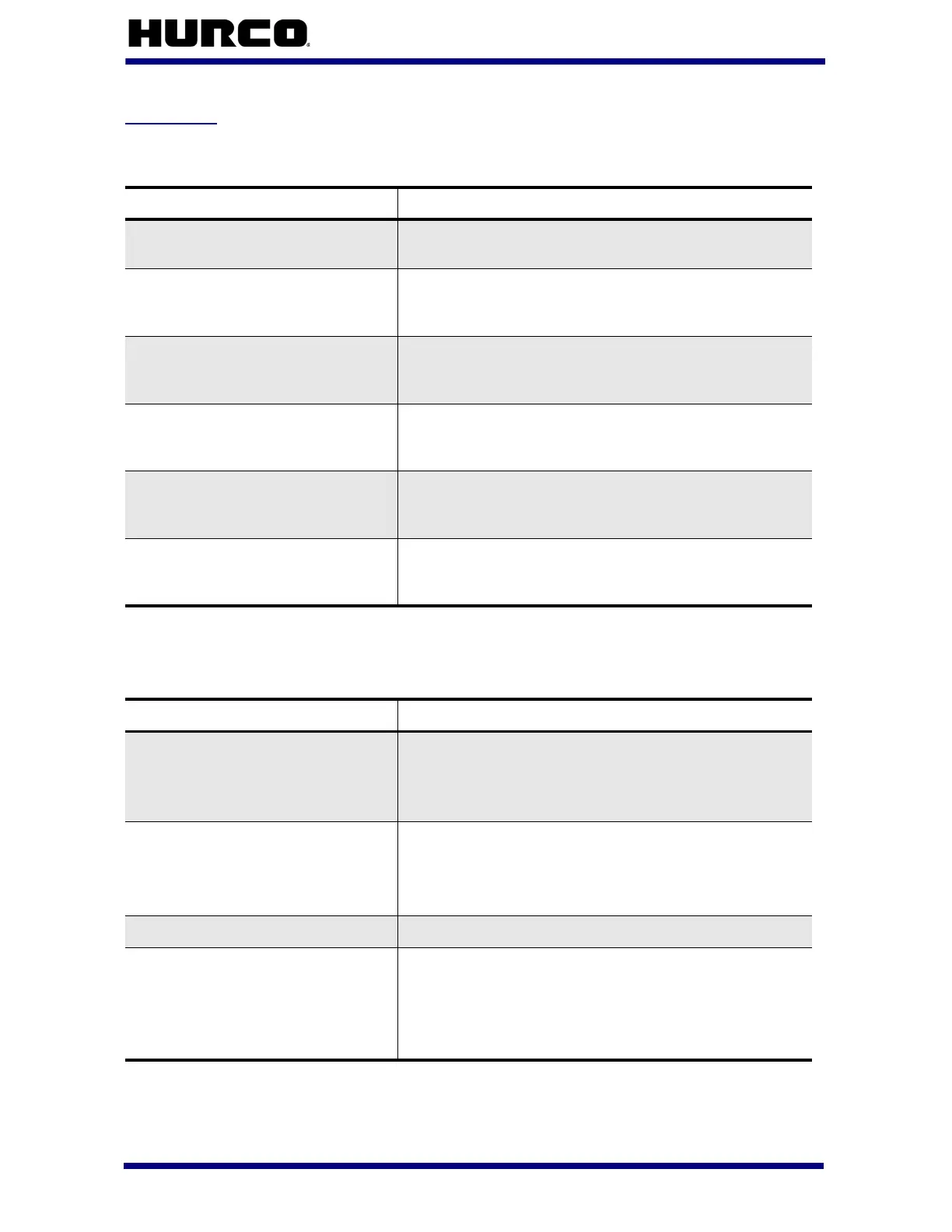 Contact your Hurco distributor for technical