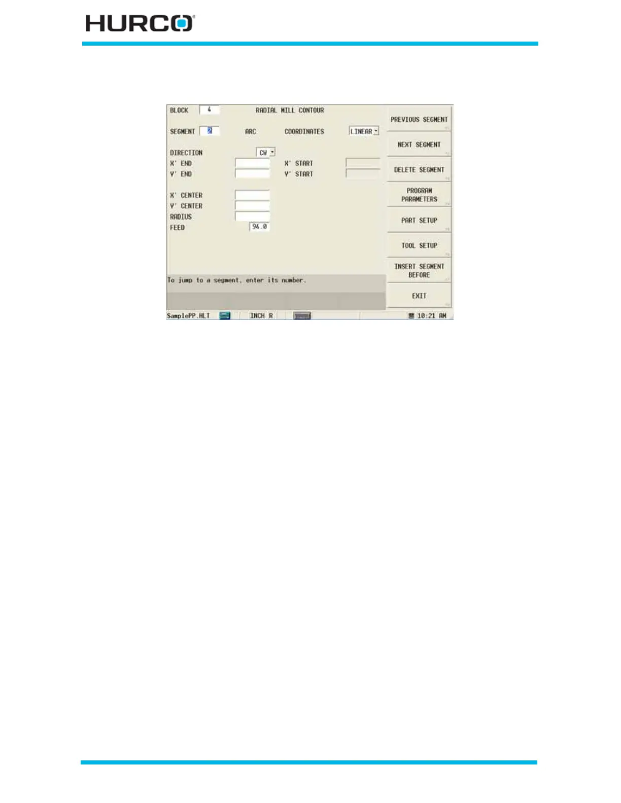 • FEED—contains the feed rate from the previous segment. This value can be