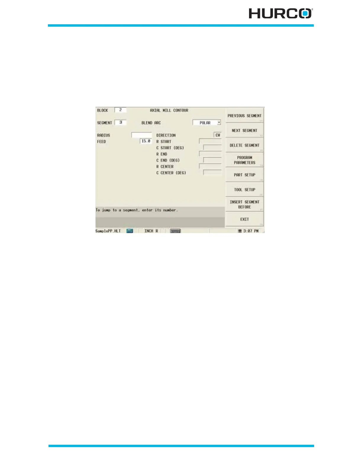From the New Axial Contour Segment screen, select Blend Arc F3, and the Axial Mill