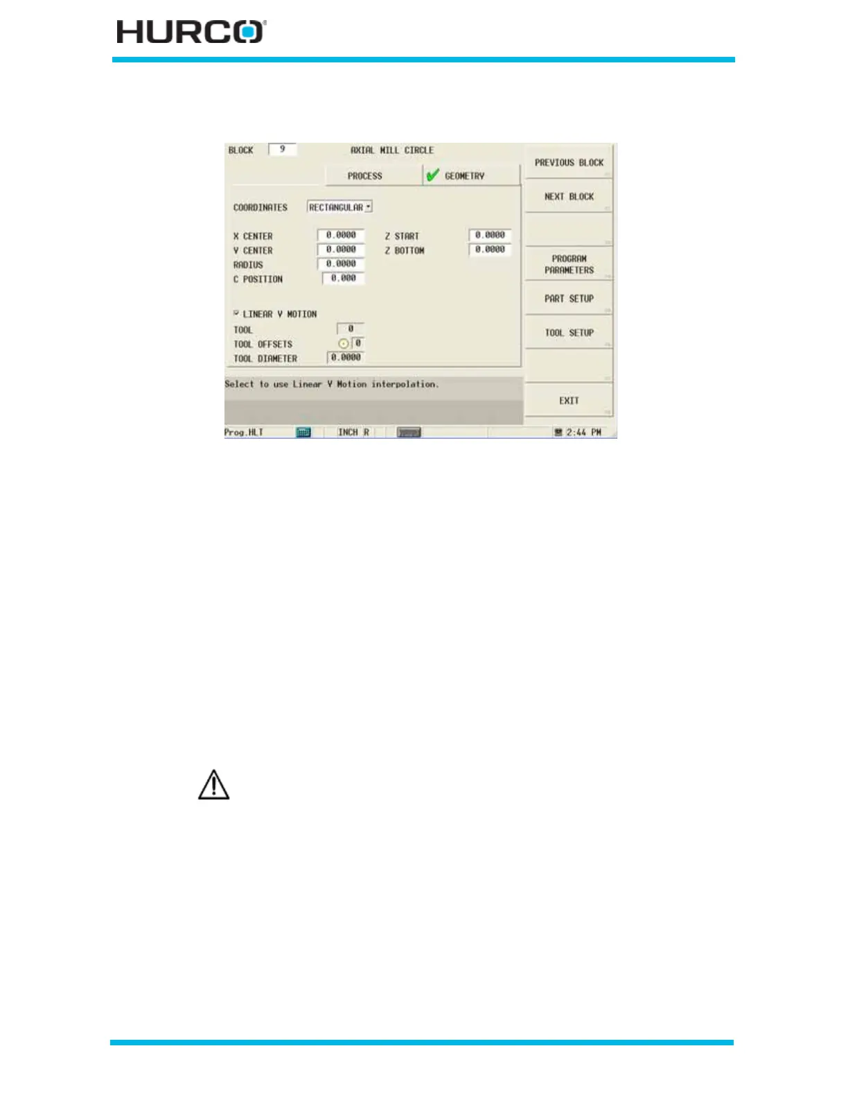 Figure 2–125. Live-Tooling Axial Mill Circle screen Geometry tab: Rectangular Coordi-