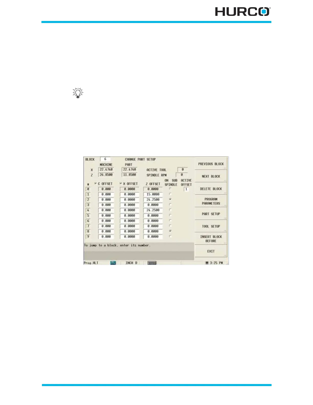 Work offsets programmed in Part Setup are in effect when a part program is running until