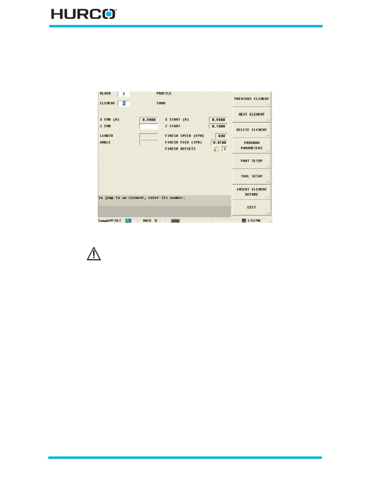 Select the NEXT ELEMENT F2 softkey and the New Profile Element screen appears with
