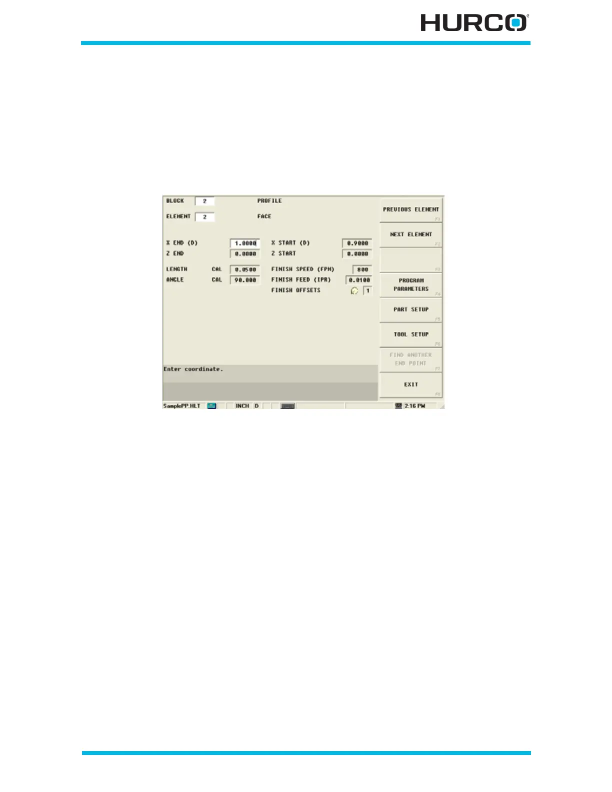 Figure 3–34. Profile Face Element Screen with X End (D) value