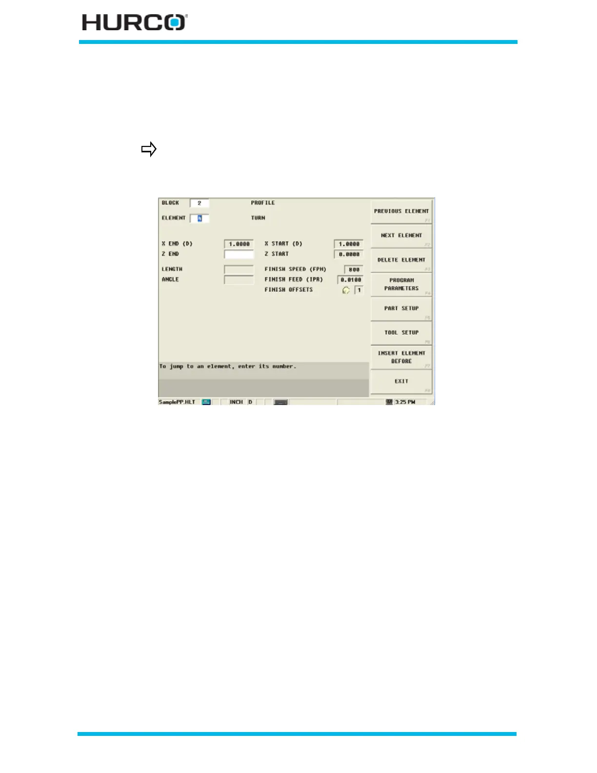 Select the NEXT ELEMENT F2 softkey and the New Profile Element screen appears with