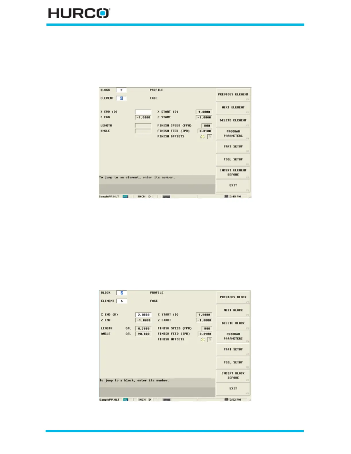 Select the NEXT ELEMENT F2 softkey and the New Profile Element screen appears with