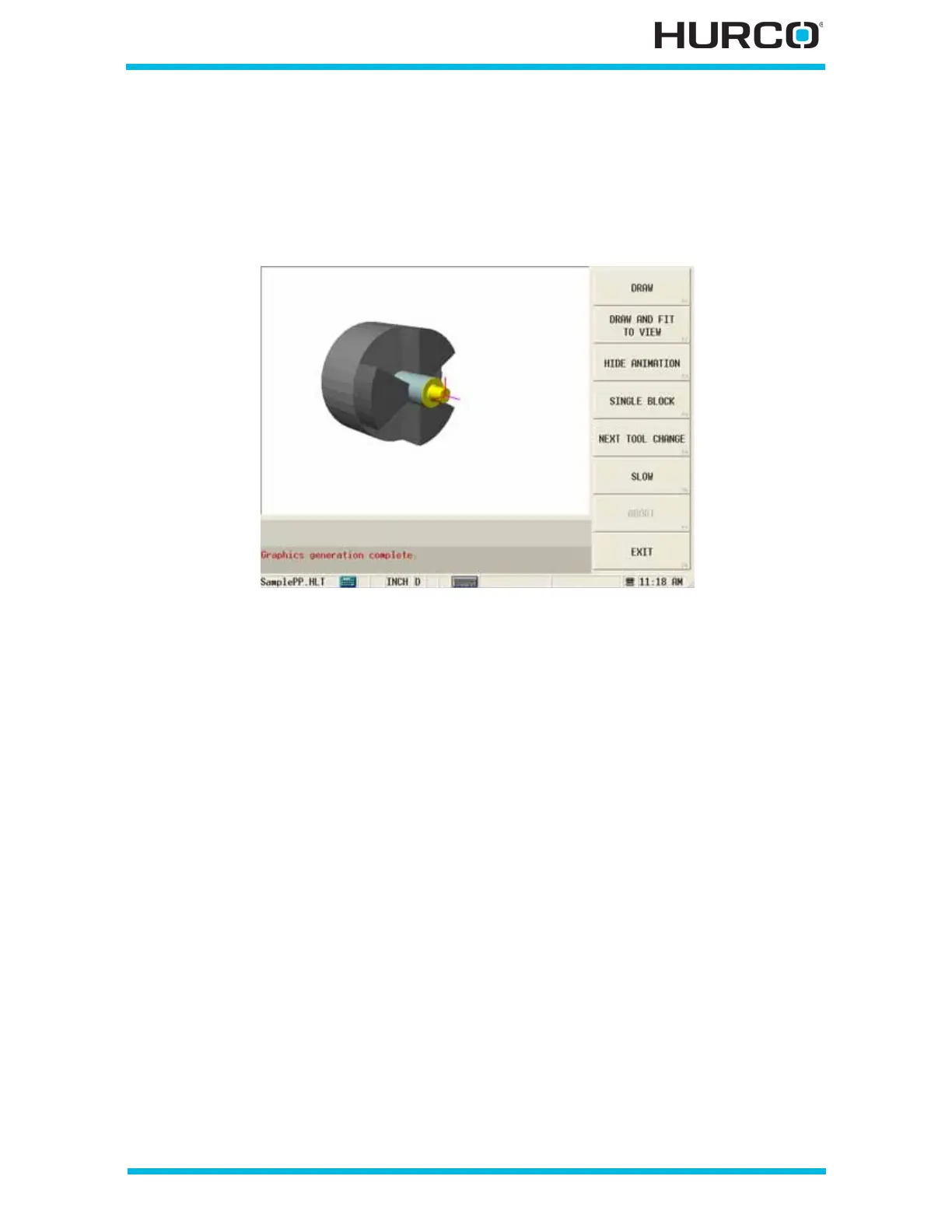 Select the Verify console key to view the tool path and stock with Verification Graphics.